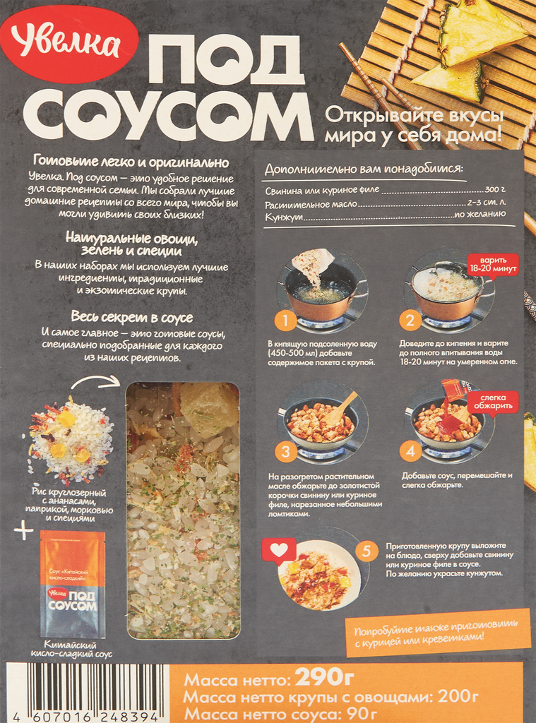 Набор для приготовления Увелка Рис с ананасами по-китайски в кисло-сладком соусе 290г РЕСУРС