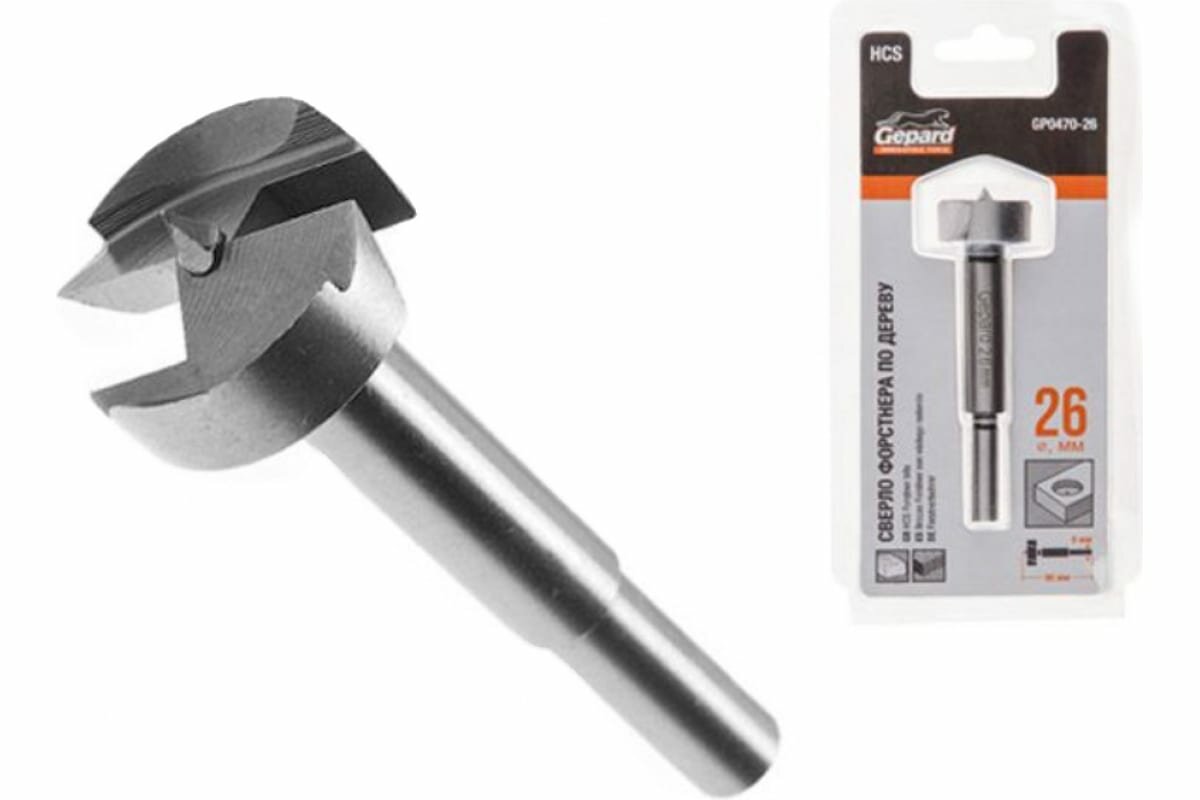 Сверло Форстнера по дереву 26 мм GEPARD предназначено для сверления глухих отверстий большого диаметра с плоским основанием и гладкими краями. Применяется для обработки твердых и мягких пород дерева, ДСП. Сверло имеет центрирующее острие для точного позиционирования на заготовке. Изготовлено из быстрорежущей стали HSS. Диаметр хвостовика 8 мм.