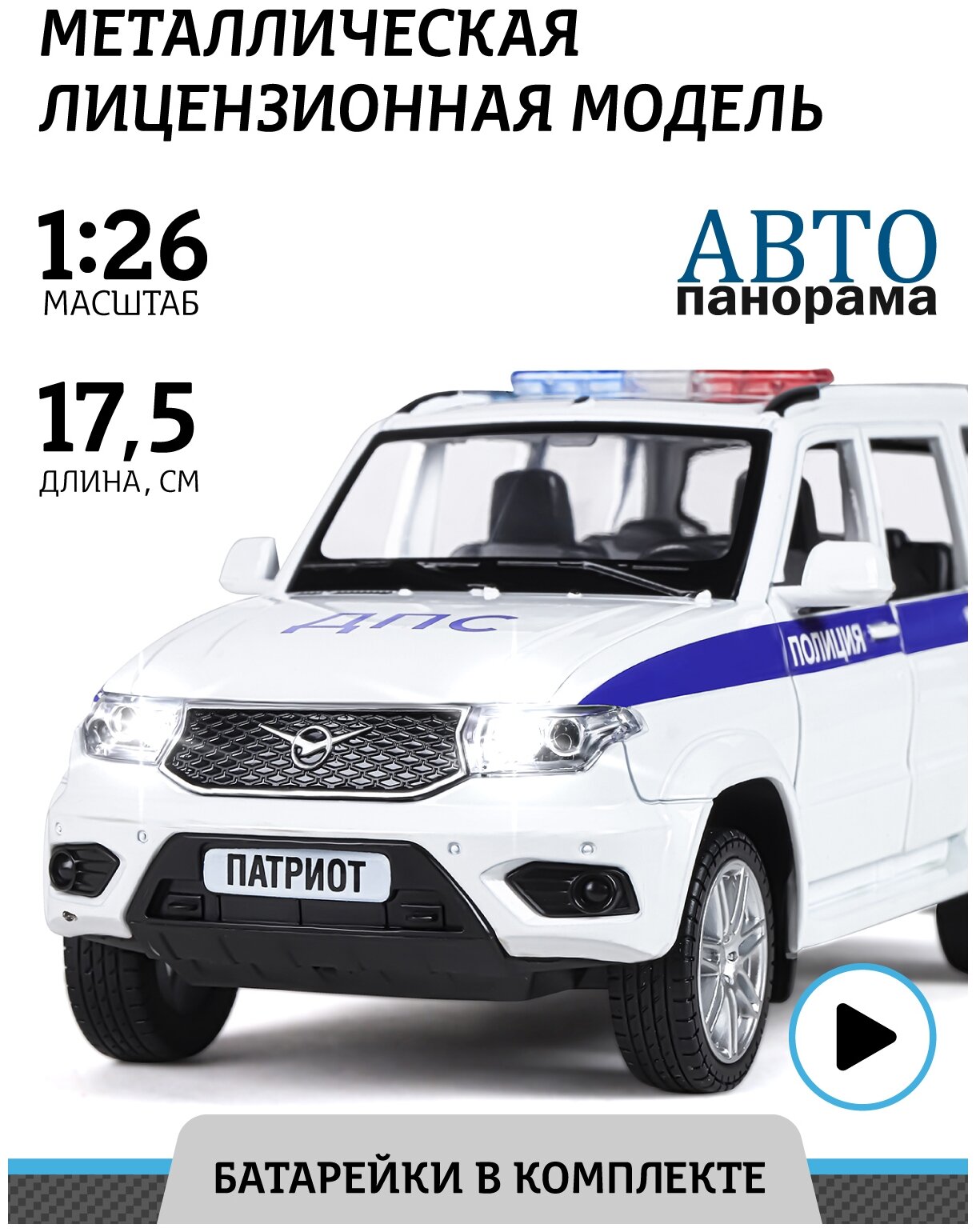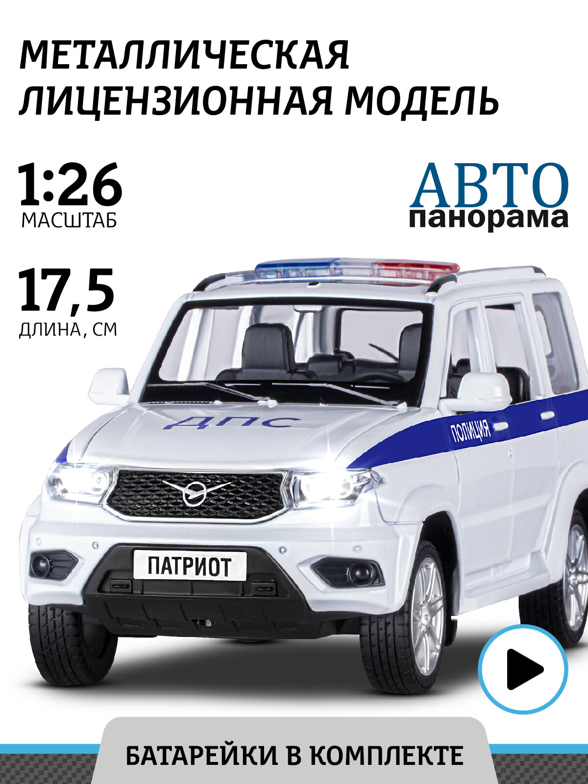 - ТМ "Автопанорама" машинка металлическая, УАЗ "PATRIOT", 1:26, свет, звук, инерция, JB1251416