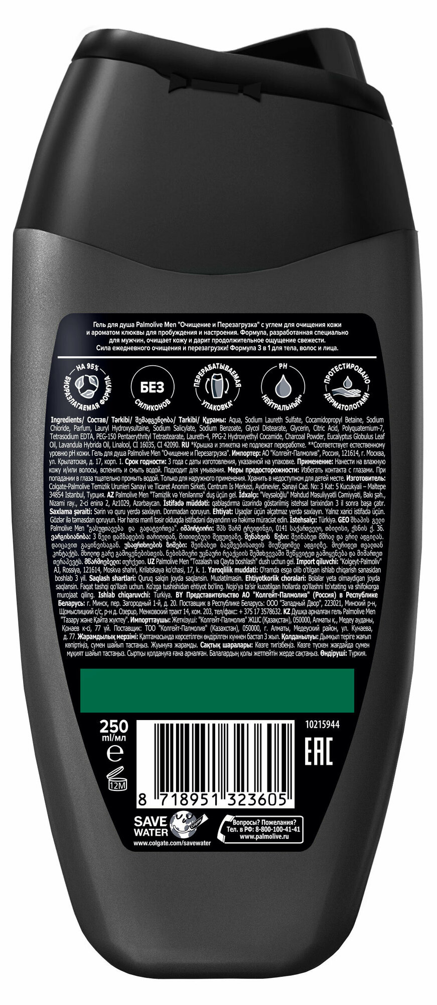 Гель для душа Palmolive Очищение и перезагрузка 4в1 250мл