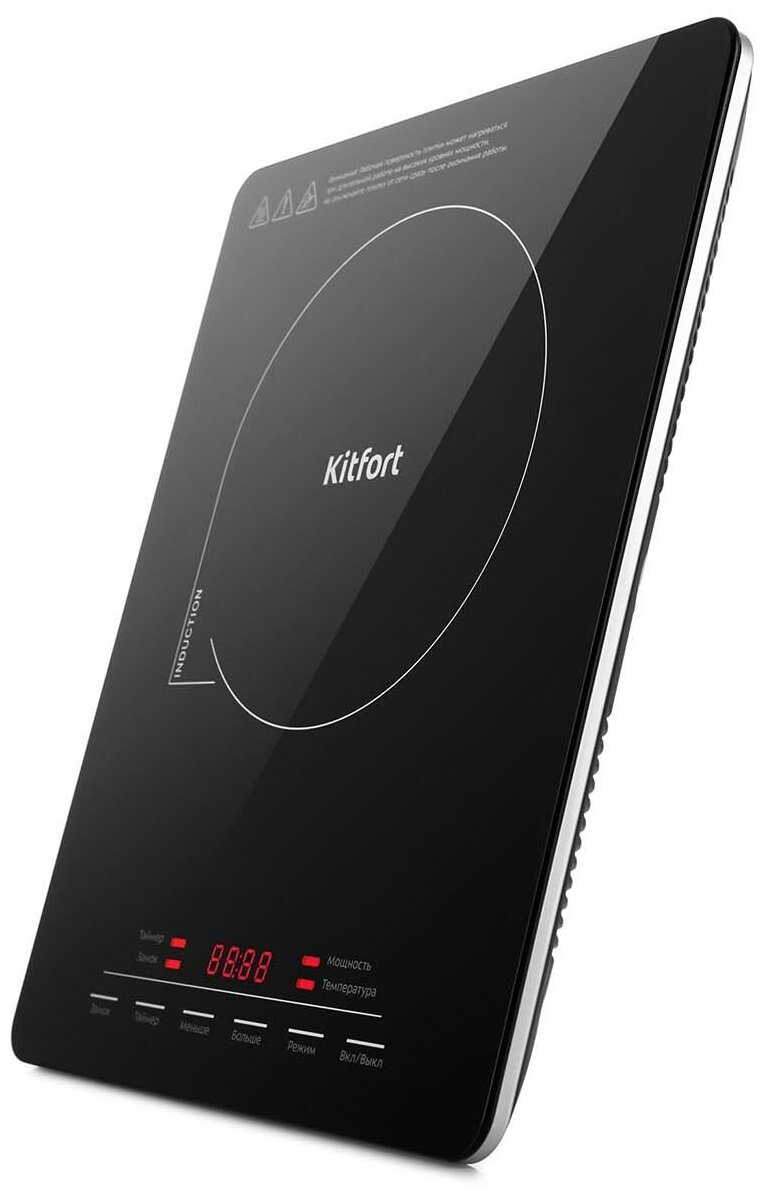 Kitfort Индукционная плитка практична и экономична. Эта плита использует современные технологии, позволяющие готовить ваши любимые блюда вкусно, быстро и абсолютно безопасно! С помощью панели управления вы можете настроить необходимый нагрев от 120 до 1800 Вт, температуру до 240°C и таймер времени приготовления до 24 часов. Также в плитке встроена функция блокировки, чтобы случайным нажатием не сбить заданные настройки. Принцип работы индукционной плиты практически исключает вероятность получения ожогов, возникновения огня, дыма и гари, поскольку рабочая поверхность почти не нагревается во время готовки. Для индукционной плиты подходит посуда с дном из ферромагнитных материалов: стальная, чугунная, эмалированная, посуда из нержавеющей стали, а также любая другая, предназначенная для индукционного нагрева. Плита выдерживает вес не более 10 кг. Плитка имеет более тонкий корпус, в отличие от своих предшественников - всего 44 мм!