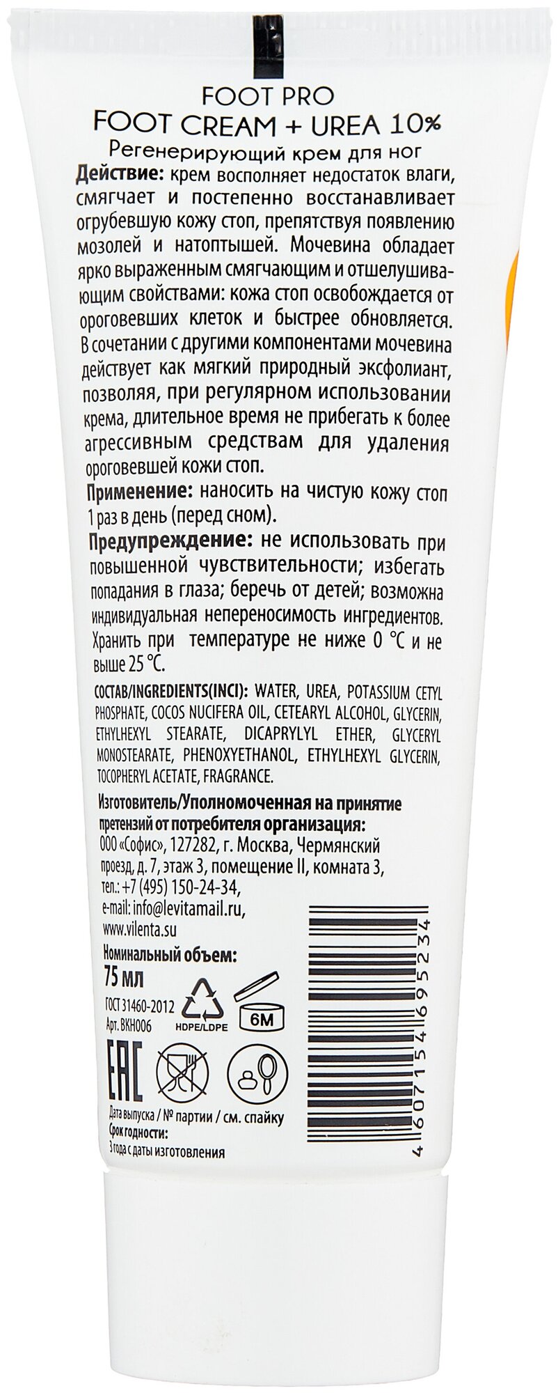 Крем восполняет недостаток влаги, смягчает и постепенно восстанавливает огрубевшую кожу стоп, препятствуя появлению мозолей и натоптышей. Мочевина обладает ярко выраженными смягчающим и отшелушивающим свойствами: кожа стоп освобождается от ороговевших клеток и быстрее обновляется. В сочетании с другими компонентами мочевина действует как мягкий природный эксфолиант, позволяя, при регулярном использовании крема, длительное время не прибегать к более агрессивным средствам для удаления ороговевшей кожи стоп.