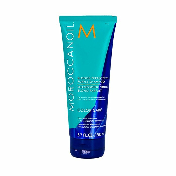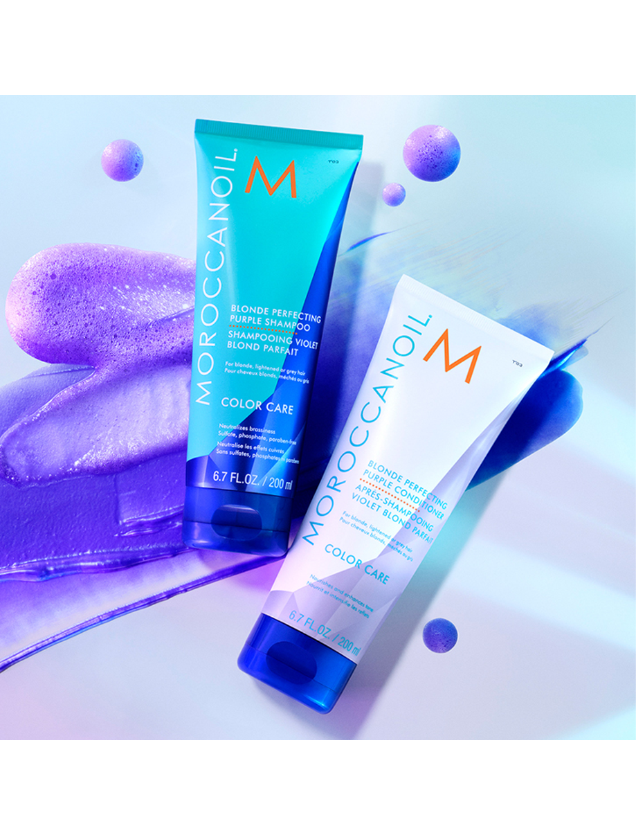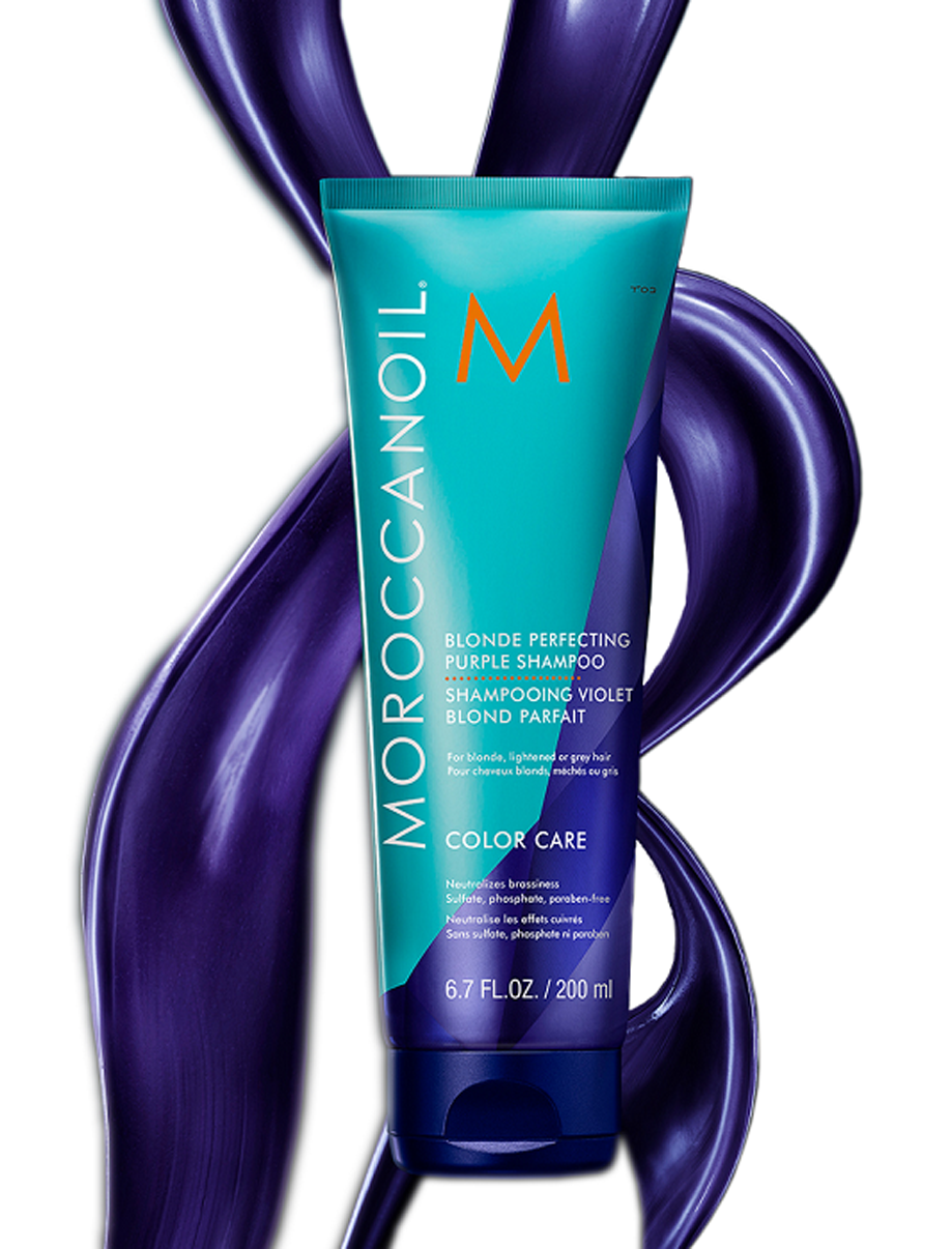 Тонирующий шампунь Moroccanoil с фиолетовым пигментом станет незаменимым помощником для обладательниц светлых, осветленных и седых волос.