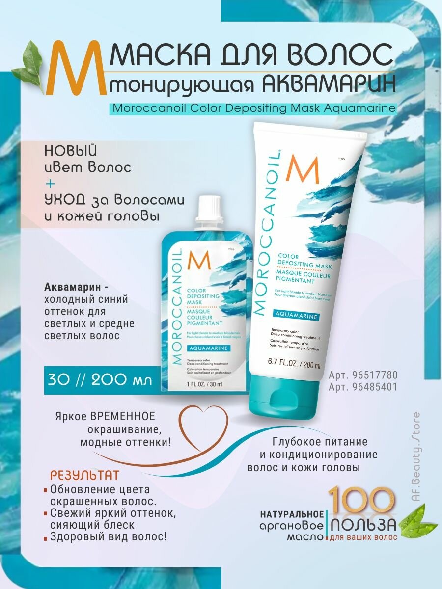 Moroccanoil Тонирующая маска для волос Depositing Mask тон Aquamarine 200 мл (Moroccanoil ) COLOR DEPOSITING MASK AQUAMARINE