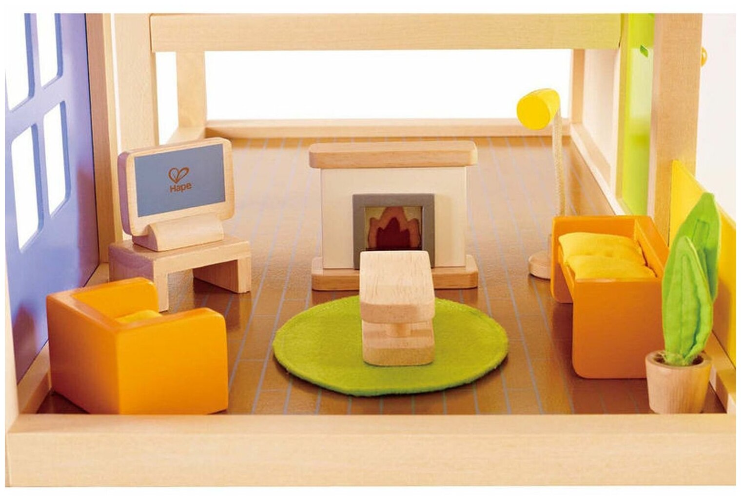 • Рекомендуется для мальчиков и девочек. • Возрастные рекомендации: от 3 лет. • Подходит для мини-кукол до 12 см. • Теплая и уютная гостиная, где могут собраться друзья и семья. • Включает: 1 диван, 1 кресло, 1 камин, 1 журнальный столик, 1 лампа, 1 коврик, 1 растение, 1 телевизор. • Подходит для кукольного домика Hape. • В комнате тоже интересно играть самостоятельно. • Помогает развить ролевую игру и ловкость, а также игривый рассказ • С комнатой интересно играть и отдельно. • Помогает развить ролевую игру и ловкость. • Игрушка изготовлена из безопасных для детей и прочных материалов, гарантирующих, что это игрушка, которую ваш ребенок будет любить долгие годы. • Игрушка прошла контроль на безопасность и качество. Один из крупнейших в мире производителей игрушек. Hape руководствуется философией, что будущее принадлежит нашим детям, и создает игрушки, которые вдохновляют на игру и изучение мира, в котором мы живем. Все продукты соответствуют строгим международным стандартам качества и безопасности. Hape - новое поколение игрушек.