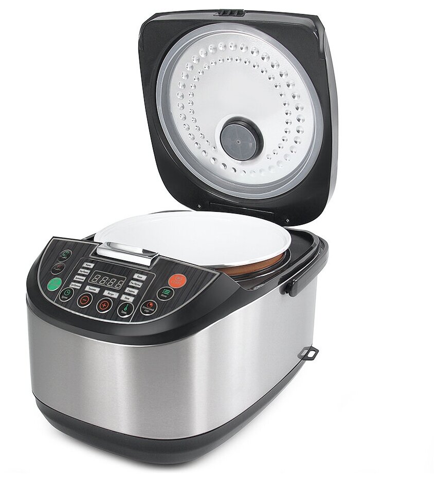 В устройстве предусмотрены 20 автоматических программ, которые помогут приготовить супы, каши, плов, мясо, рыбу, овощи, а также испечь хлеб и йогурт. Прибор оснащен функцией поддержания температуры, что дает возможность сохранить блюдо теплым. Другие технические параметры модели: