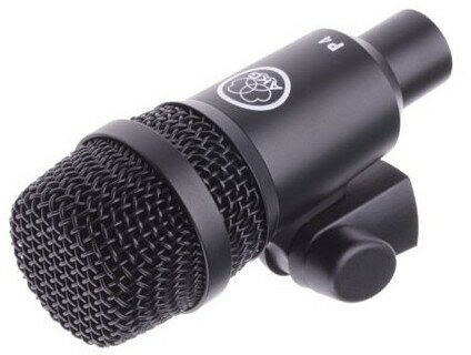 AKG P4 – миниатюрный динамический микрофон, предназначенный для озвучивания ударных инструментов (томов и перкуссии), духовых, а также для гитарных усилителей. У него кардиоидная диаграмма направленности. Высокоэффективный капсюль выдерживает высокие уровни звукового давления до 152 дБ, что позволяет передавать звук даже очень громких инструментов без искажений. В него также встроена катушка для компенсации низкочастотного гула. Кроме того, катушка отклоняет электромагнитный шум для передачи чистейшего звука.