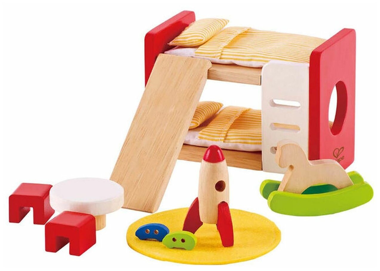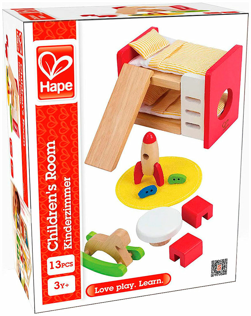 • Рекомендуется для мальчиков и девочек. • Возрастные рекомендации: от 3 лет. • Идеально вписывается в кукольный дом Hape или в любой кукольный дом, который нуждается в мебели для детской комнаты. • Мебельный комплект для комнаты: двухъярусная кровать, игровой стол, стулья и даже ракетный корабль. • Способствует интересным ролевым играм и творчеству. • Игрушка изготовлена из безопасных для детей и прочных материалов, гарантирующих, что это игрушка, которую ваш ребенок будет любить долгие годы. • Игрушка прошла контроль на безопасность и качество. Рекомендации: • Рекомендуется для мальчиков и девочек. • Возрастные рекомендации: от 3 лет. Один из крупнейших в мире производителей игрушек. Hape руководствуется философией, что будущее принадлежит нашим детям, и создает игрушки, которые вдохновляют на игру и изучение мира, в котором мы живем. Все продукты соответствуют строгим международным стандартам качества и безопасности. Hape - новое поколение игрушек.