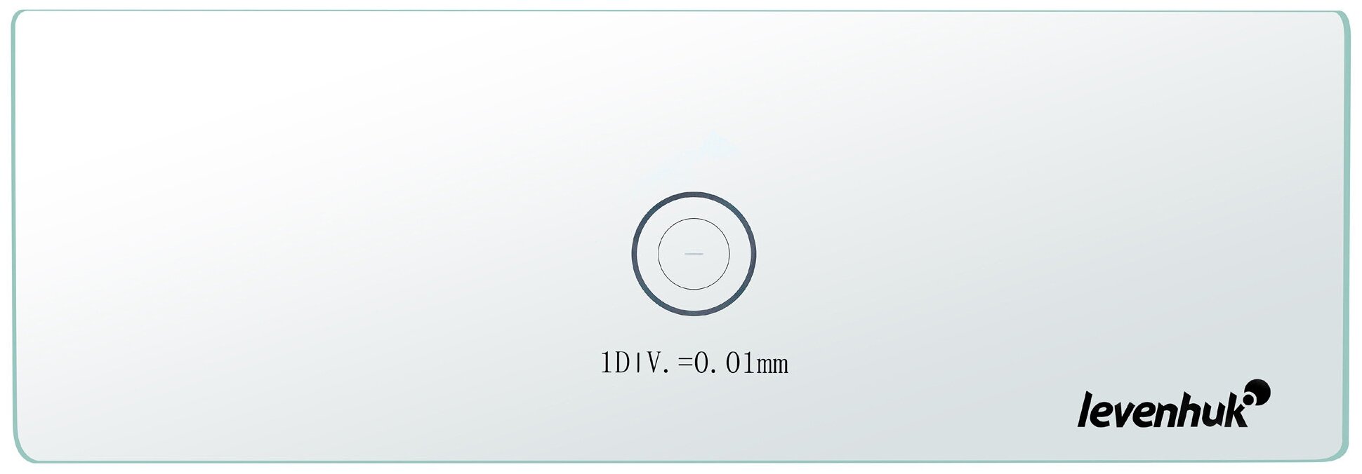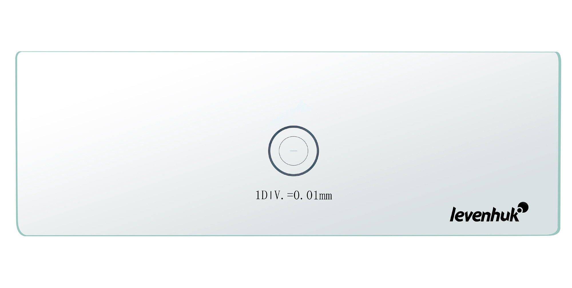 Калибровочный слайд Levenhuk – это аксессуар для микроскопа, который используется для калибровки программы анализа изображений. Он представляет собой прозрачное стекло с нанесенной на его поверхность микрометрической шкалой. Шкала помещена в окружность и четко различима под микроскопом. Цена деления шкалы – 0,01 мм. Калибровочный слайд позволяет быстро настроить программу, чтобы проводить измерения в наиболее удобных для исследователя реальных единицах. Калибровочный слайд Levenhuk можно использовать с микроскопами любых марок.