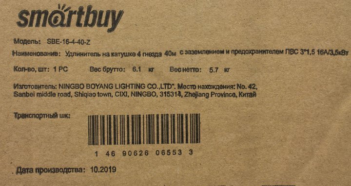 Удлинитель силовой SMARTBUY () 4 гнз - 40м, на катушке, с/зУдлинитель силовой SMARTBUY () представляет собой надежное и удобное решение для расширения длины электрического провода. Этот удлинитель обладает четырьмя гнездами, что позволяет подключить одновременно несколько электроприборов.Основные характеристики:- Длина: 40 метров.- Конструкция на катушке обеспечивает удобную транспортировку и хранение.- С защитными заземляющими контактами для безопасного использования.Удлинитель силовой SMARTBUY () отличается высоким качеством материалов и прочностью конструкции. Он способен выдерживать большие нагрузки и обеспечивает стабильную передачу электрического тока.Этот удлинитель идеально подходит для использования в домашних условиях, на строительных площадках, в офисах или любых других местах, где требуется дополнительная длина силового кабеля.Необходимость в удлинителе возникает постоянно, и удобство его использования становится неотъемлемой частью повседневной жизни. Удлинитель силовой SMARTBUY () является надежным помощником в решении этой задачи, обеспечивая безопасность и комфорт при подключении электроприборов.Выбирайте удлинитель силовой SMARTBUY () и наслаждайтесь удобством его использования!