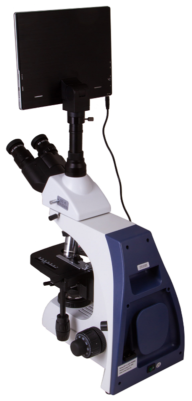 Levenhuk MED D35T LCD – это профессиональный микроскоп с ЖК-экраном и планахроматической оптикой, который создан для лабораторных наблюдений. На увеличении от 40 до 1000 крат можно наблюдать контрастное, ясное и детализированное изображение без оптических искажений, что позволяет исследовать совсем малые структуры. В комплекте есть камера, которая благодаря встроенному ЖК-экрану и предустановленному программному обеспечению не требует подключения к компьютеру и открывает доступ к множеству цифровых возможностей. Микроскоп станет отличным дополнением к арсеналу оптической техники современной лаборатории, научно-исследовательского института или оздоровительного центра. Микроскопы Levenhuk серии MED 35 снабжены оптической системой, скорректированной на бесконечность, которая применяется в микроскопах профессионального и высокого класса. Эта система включает объективы класса Infinity PlanAchromat и позволяет получать чистые, высококонтрастные изображения с высокой степенью плоскостности. Одна из самых важных особенностей бесконечной оптической системы заключается в том, что она позволяет устанавливать в оптический путь микроскопа между объективами и окулярным тубусом любые дополнительные компоненты. К ним можно отнести поляризаторы, эпи-флуоресцентные осветители и фазово-контрастные устройства. В итоге модульный принцип конструкции и простота в эксплуатации делают Levenhuk MED 35 оптимальными микроскопами для использования разных видов микроскопии и работы в гематологических, гистологических, микробиологических и других лабораториях. Тринокулярная насадка разделена на бинокулярную визуальную часть и отдельную вертикальную трубку, в которую устанавливается цифровая камера. Насадку можно вращать на 360°. Для повышения комфорта длительных наблюдений визуальный блок отклонен на 30-градусный угол. Конструкция насадки позволяет одновременно вести визуальные наблюдения и выводить картинку с микроскопа на встроенный или внешний экран. Обратите внимание: у насадки есть делитель светового потока. Высокое качество изображения достигается за счет использования планахроматических объективов. Оптика снижает хроматизм, выравнивает поле зрения, улучшает детализацию и повышает контрастность. В комплекте пять объективов разной кратности, причем три из них, с наибольшим увеличением, имеют пружинящие оправы. Для масляной иммерсии применяется 100-кратный объектив. Наблюдения ведутся через широкопольные окуляры. Они дают 10-кратное увеличение и позволяют регулировать диоптрии. Оптика аксессуаров сделана из стекла и защищена антигрибковым покрытием. Комплектная цифровая камера снабжена сенсорным ЖК-экраном, на котором можно наблюдать картинку с микроскопа в режиме реального времени. Программа для работы с изображениями позволяет фотографировать исследования, вести видеозапись наблюдений и проводить базовую обработку снимков.