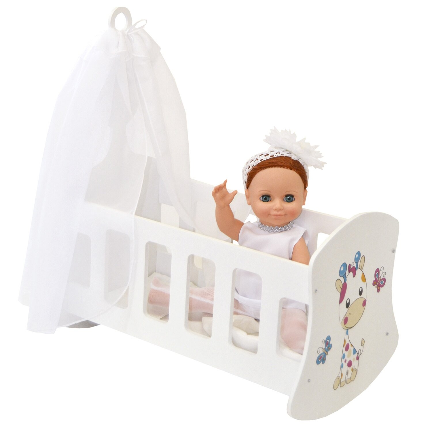 • Люлька с балдахином - для кукол до 45 см из качественного дерева • Рекомендуется для девочек от 3 лет • Люлька с балдахином изготовлено из безопасных качественных материалов • Упаковка: коробка • Особенность: Люлька с балдахином серии "Мимими", "Крошка Фафи" - с полноцветным печатным рисунком на бортике и комплектом белья и воздушным балдахином понравится любой девочке. Люлька подходи для кукол до 45 см. В комплекте идет однотонное постельное белье: подушка, матрас, одеяло. Люлька подходит для сюжетно-ролевой игры в дочки-матери. Такие игры позволяют ребенку проявить свою фантазию, аккуратность, познакомиться с понятиями ответственности и заботы, развить мелкую моторику рук и почувствовать себя в роли заботливой мамы. Поставляется в разобранном виде, прилагается инструкция по сборке.