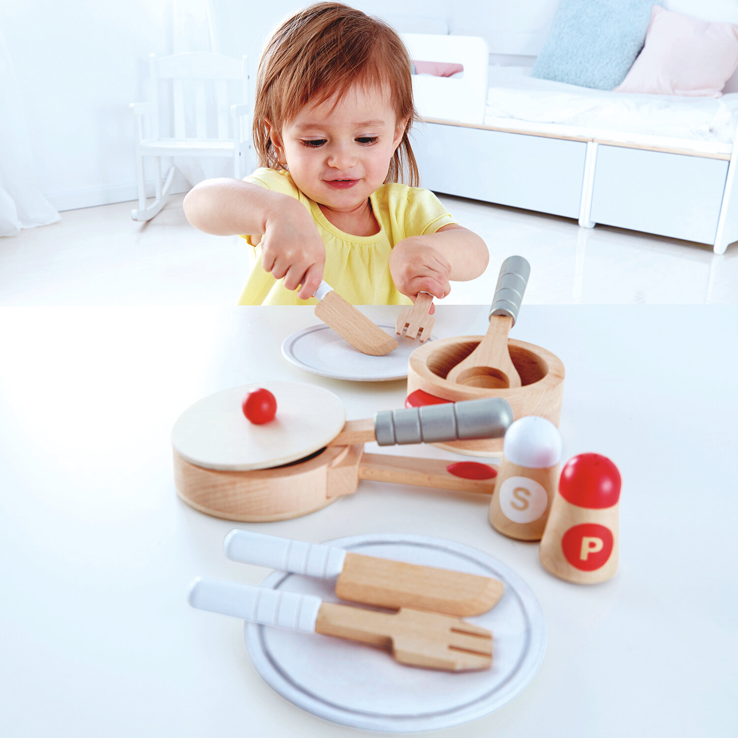 Набор продуктов Hape Cook & Serve Set E3150 бежевый/белый Игровой набор посуды 13 предметов (E3150_HP)