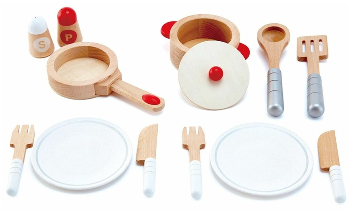 • Рекомендуется для мальчиков и девочек. • Возрастные рекомендации: от 3 лет. • Набор для приготовления пищи - все, что нужно вашему ребенку для приготовления и подачи вкусной еды на двоих. • Поощряйте творческую игру и развивайте любовь к кулинарии. • Включает в себя кастрюлю, сковороду, крышку, ложку, лопаточку, две тарелки, два набора ножей и вилок и пару солонка и перечница. • Деревянный набор состоит из реалистичных элементов: набор для специй, которые при встряхивании издают звук, съемные деревянные крышки. • Набор является отличным дополнением для кухонных гарнитуров, особенно в сочетании с кухонными и пищевыми наборами Hape. • Набор для приготовления пищи научит детей делиться с друзьями и семьей. • Игра будет стимулировать социальные навыки и командную работу, а также креативность, жизненные навыки, визуальное распознавание и мелкую моторику. • Игрушка изготовлена из безопасных для детей и прочных материалов, гарантирующих, что это игрушка, которую ваш ребенок будет любить долгие годы. • Игрушка прошла контроль на безопасность и качество. Рекомендации: • Рекомендуется для мальчиков и девочек. • Возрастные рекомендации: от 3 лет. Один из крупнейших в мире производителей игрушек. Hape руководствуется философией, что будущее принадлежит нашим детям, и создает игрушки, которые вдохновляют на игру и изучение мира, в котором мы живем. Все продукты соответствуют строгим международным стандартам качества и безопасности. Hape - новое поколение игрушек.