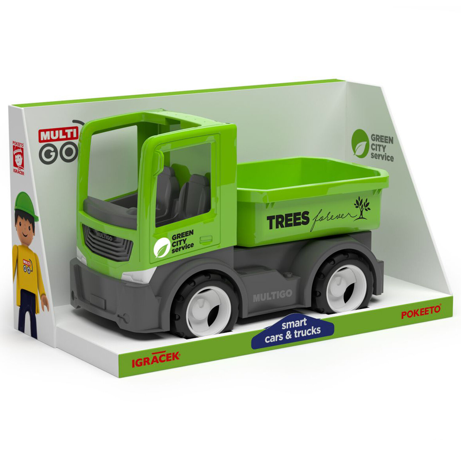 - Игрушка Городской грузовик рекомендован для мальчиков от 3 лет. - Машина изготовлена из высокачественного пластика. - Размер игрушки: 12х14х22 см - Упаковка: подарочная коробка - Особенность: Городской грузовик оснащен съемным кузовом. В игрушке можно менять кузов на другие виды из коллекции ТМ ТМ Efko (приобретаются отдельно). - Городской грузовик зеленого цвета с водителем понравится любой мальчику. - Удобный размер машины позволяет играть с ней на улице и дома.