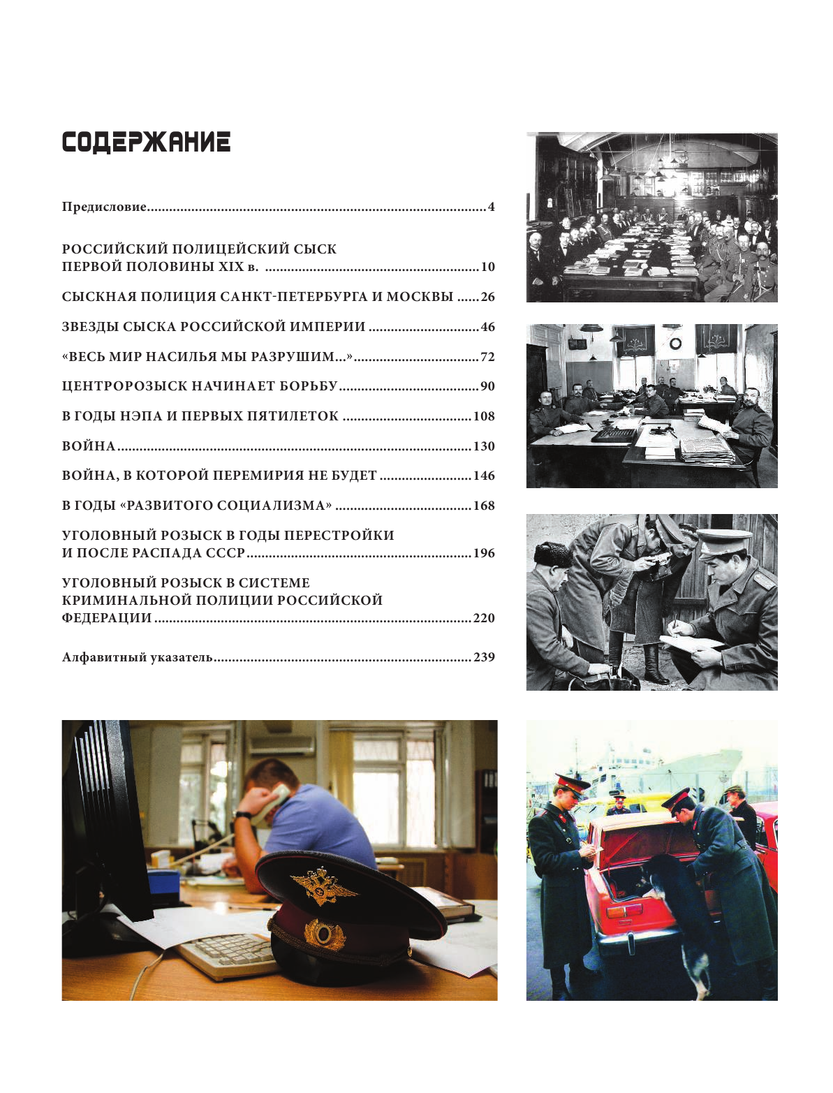 История уголовного розыска от императорской России до наших дней с биографиями действующих лиц — знаменитых сыщиков и их визави по ту сторону закона. Содержит исторические документы, иллюстрации и архивные фотографии.