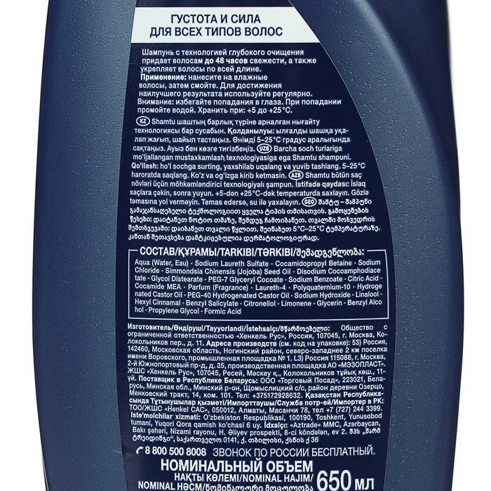 Шампунь с технологией глубокого очищения придаёт волосам до 48 часов свежести, а также укрепляет волосы по всей длине.