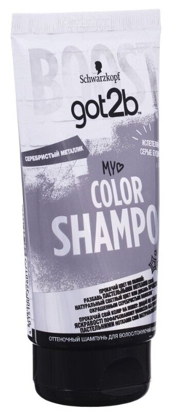 Оттеночный шампунь для волос got2b my Color Shampoo серебристый металлик. Прокачай цвет по полной: разбавь пастельными нотками свой натуральный светлый цвет или добавь яркости окрашенным серебристым волосам*.