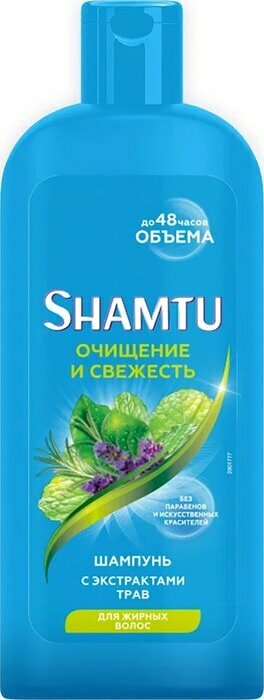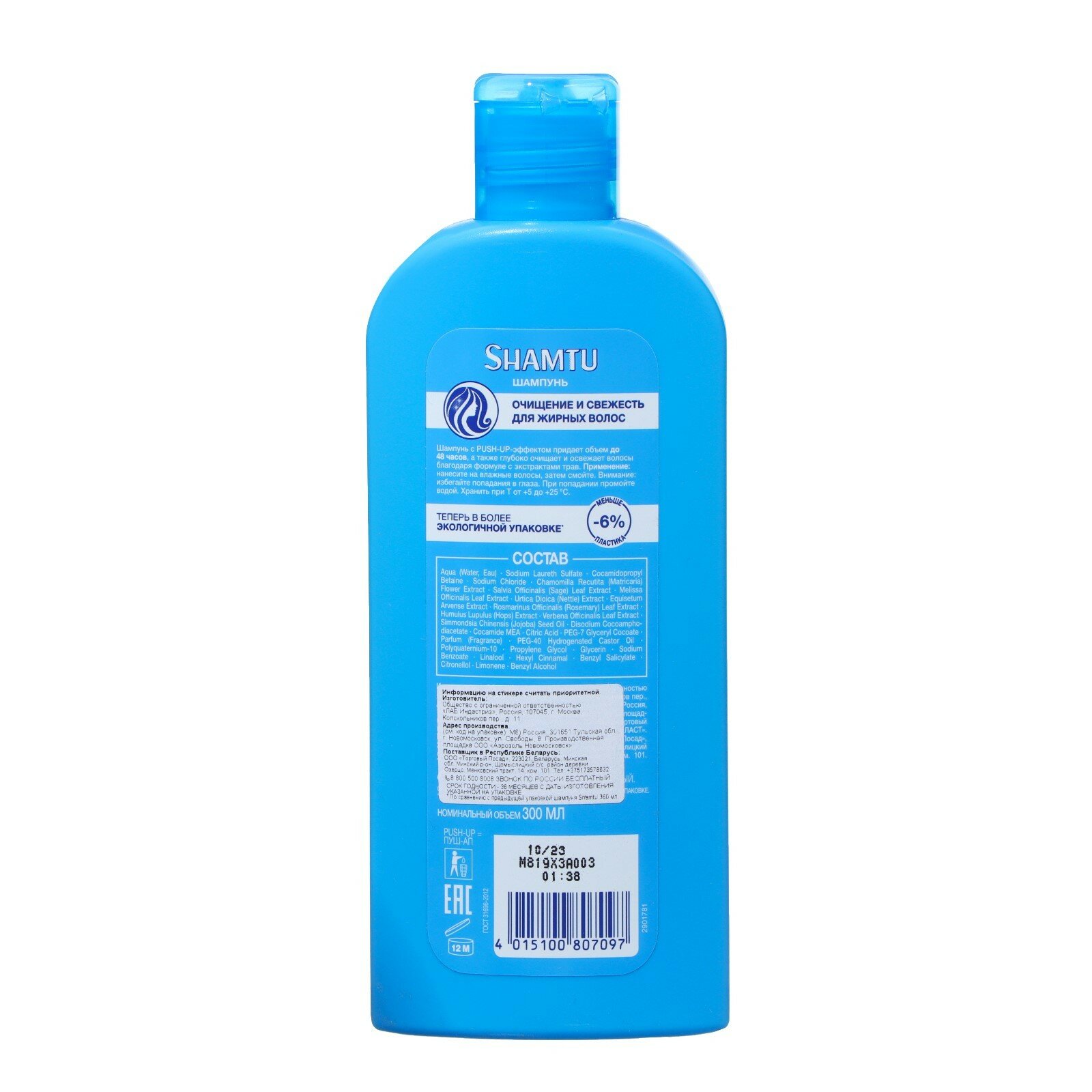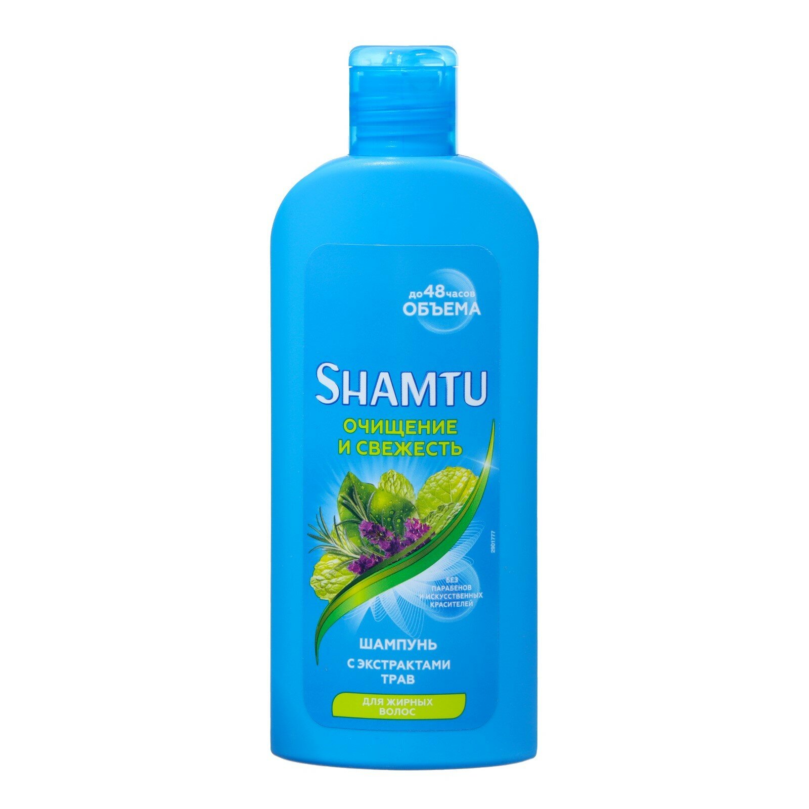 Shamtu Шампунь Очищение и Свежесть с экстрактами трав: Шампунь с Push-up эффектом придает объем до 48 часов. Глубоко очищает и освежает волосы благодаря формуле с экстрактами трав. Для жирных волос. Без парабенов и искусственных красителей!