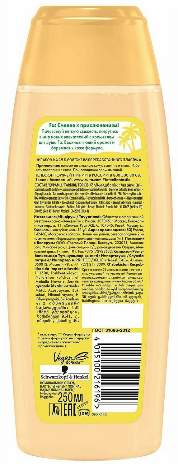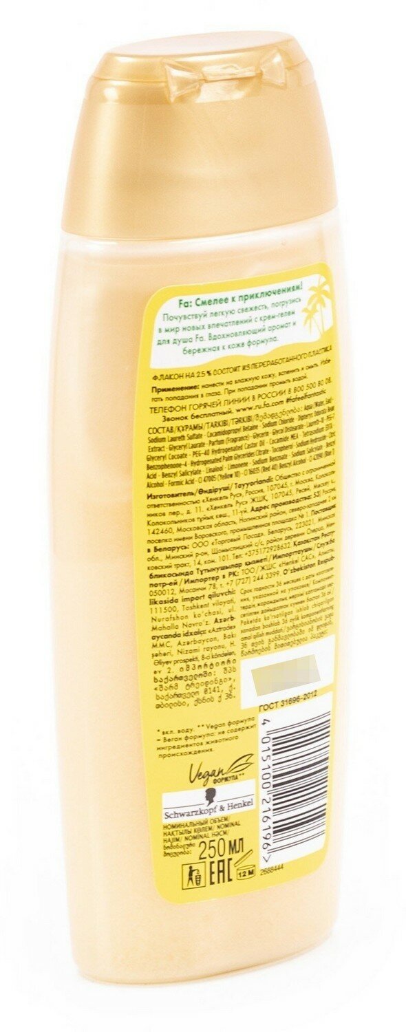 Fa: Смелее к приключениям! Почувствуй легкую свежесть, погрузись в мир новых впечатлений с ухаживающим крем-гелем для душа Fa. Вдохновляющий аромат и бережная к коже формула.