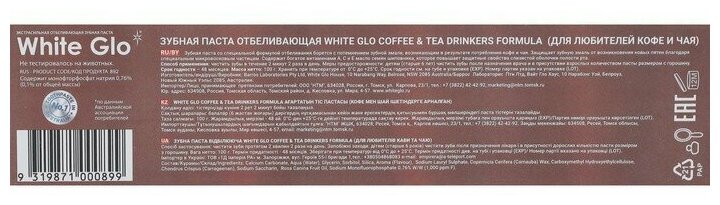 - Зубная паста White Glo, 100 грамм, отбеливающая паста для любителей кофе и чая
