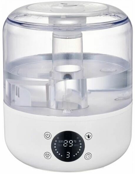 Встроенный гигрометр ведет постоянный мониторинг уровня влажности в помещении – при достижении заданного уровня влажности – прибор отключится. Как только уровень влажности снизится – увлажнитель снова включится в режиме увлажнения.