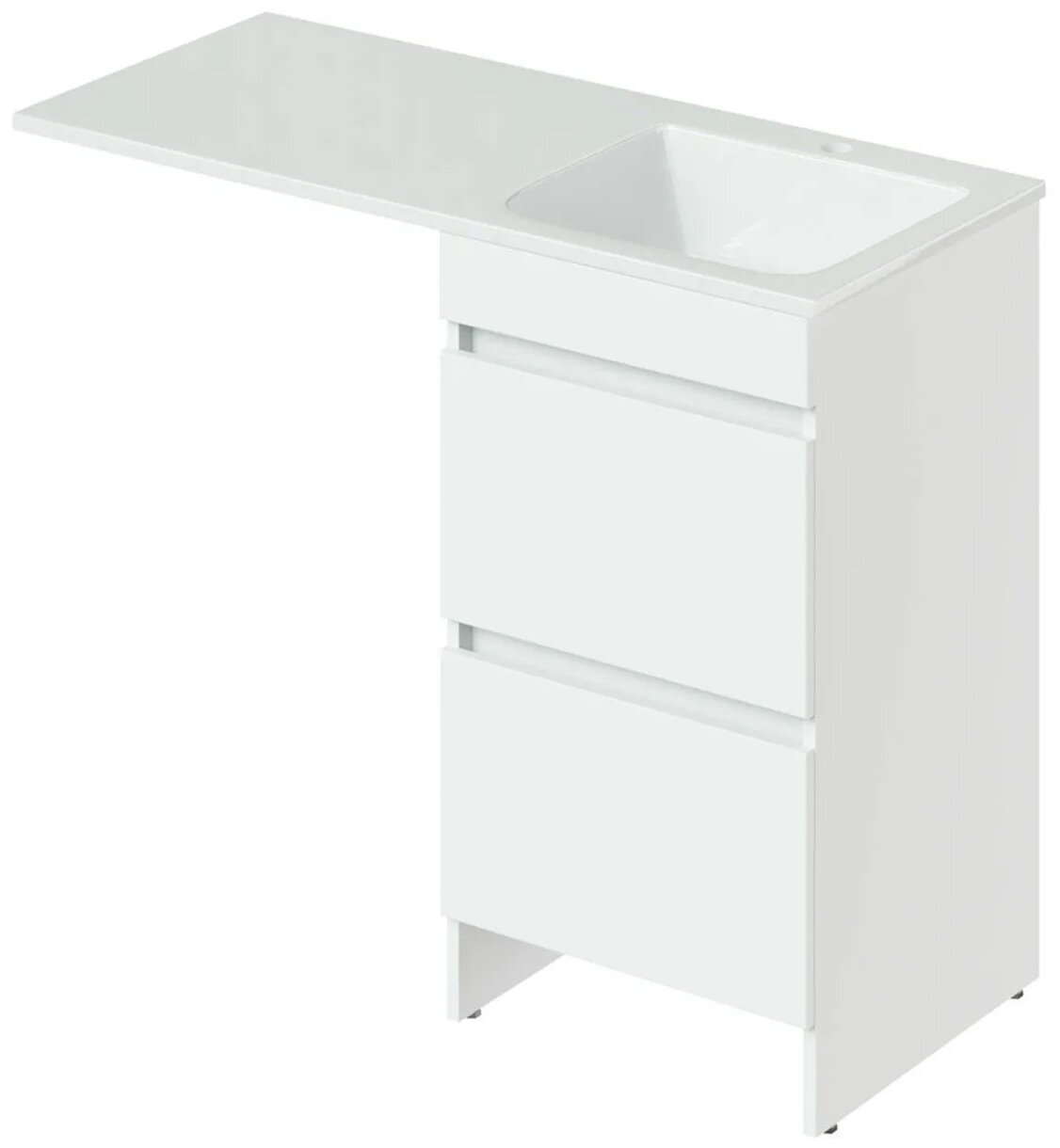 Раковина приобретается отдельно!Иметь большую столешницу у раковины, установить в ванной комнате стиральную машину, да так, чтобы все это смотрелось стильно? У нас есть решение! Напольная тумба Orange Optima OP-50TUW имеет место для установки стиральной машины и раковины, а также два вместительных ящика. В последние вы можете разложить бытовую химию, текстиль, косметику - отделения вместительны и позволят вам сделать хороший запас необходимых вещей. Фасад имеет закругленные края для более эстетичного вида и избежания мелких травм. Корпус тумбы выпонен из ЛДСП и МДФ с покрытием защитной пленкой. Она уберегает мебель от воздействия воды, влаги и перепадов температур.Тумба совместима с раковиной Камилла 110.