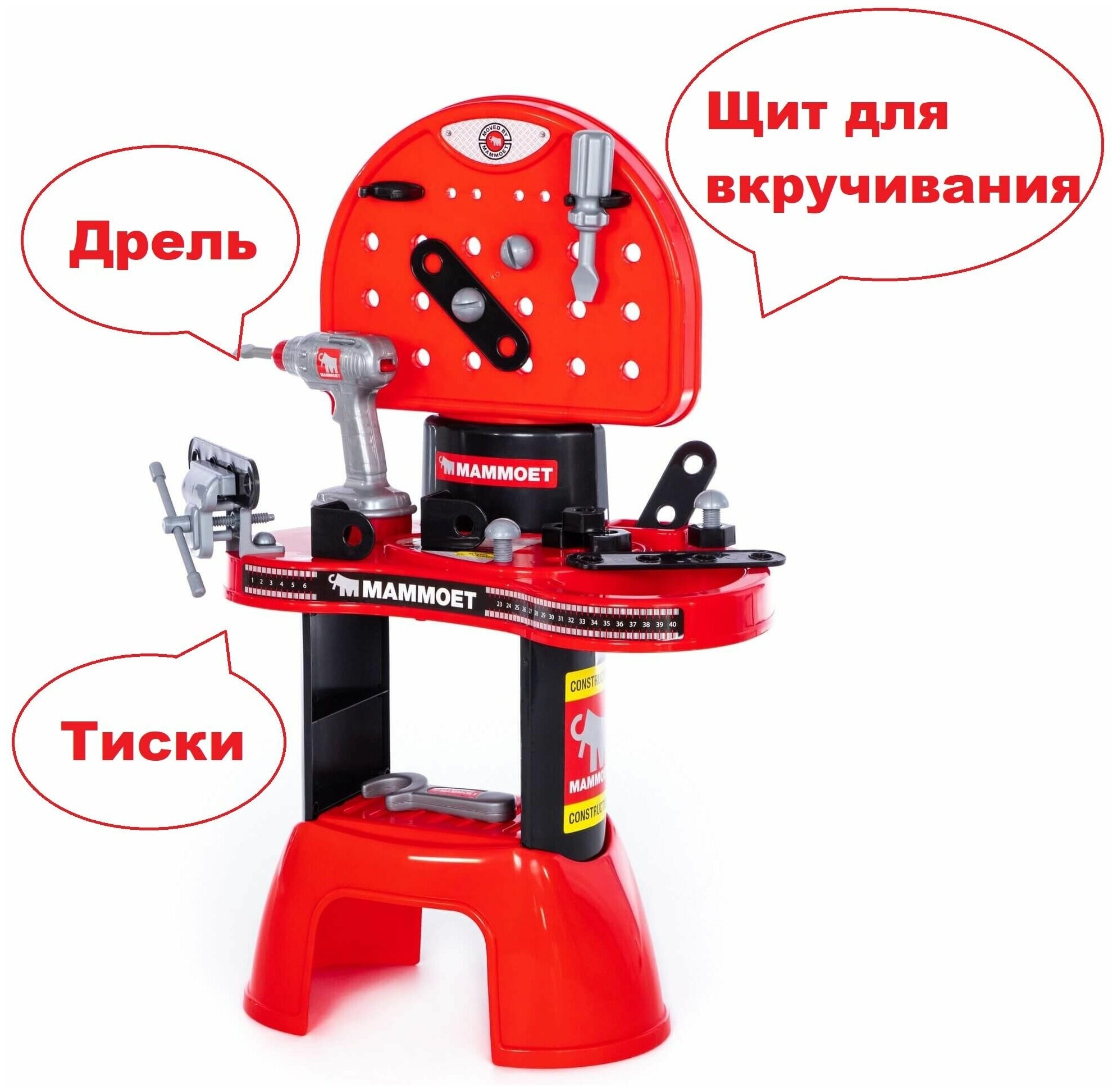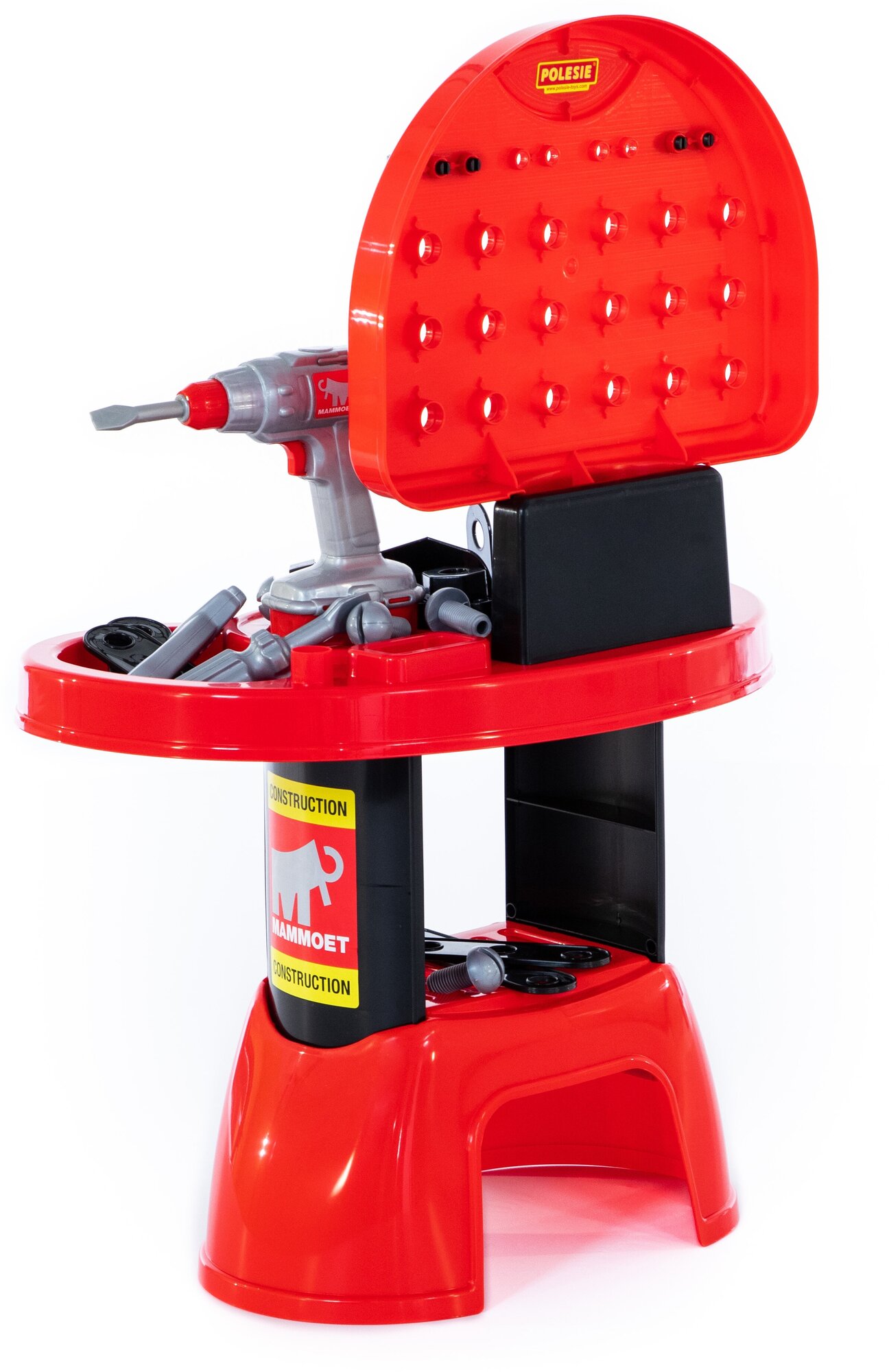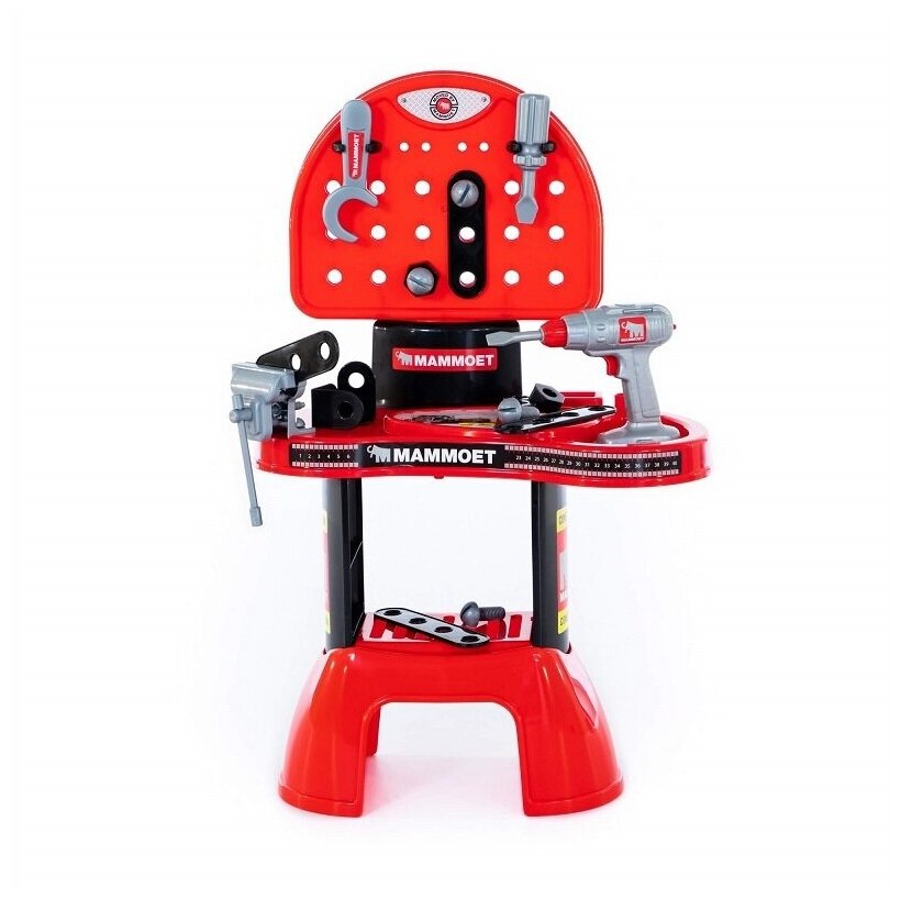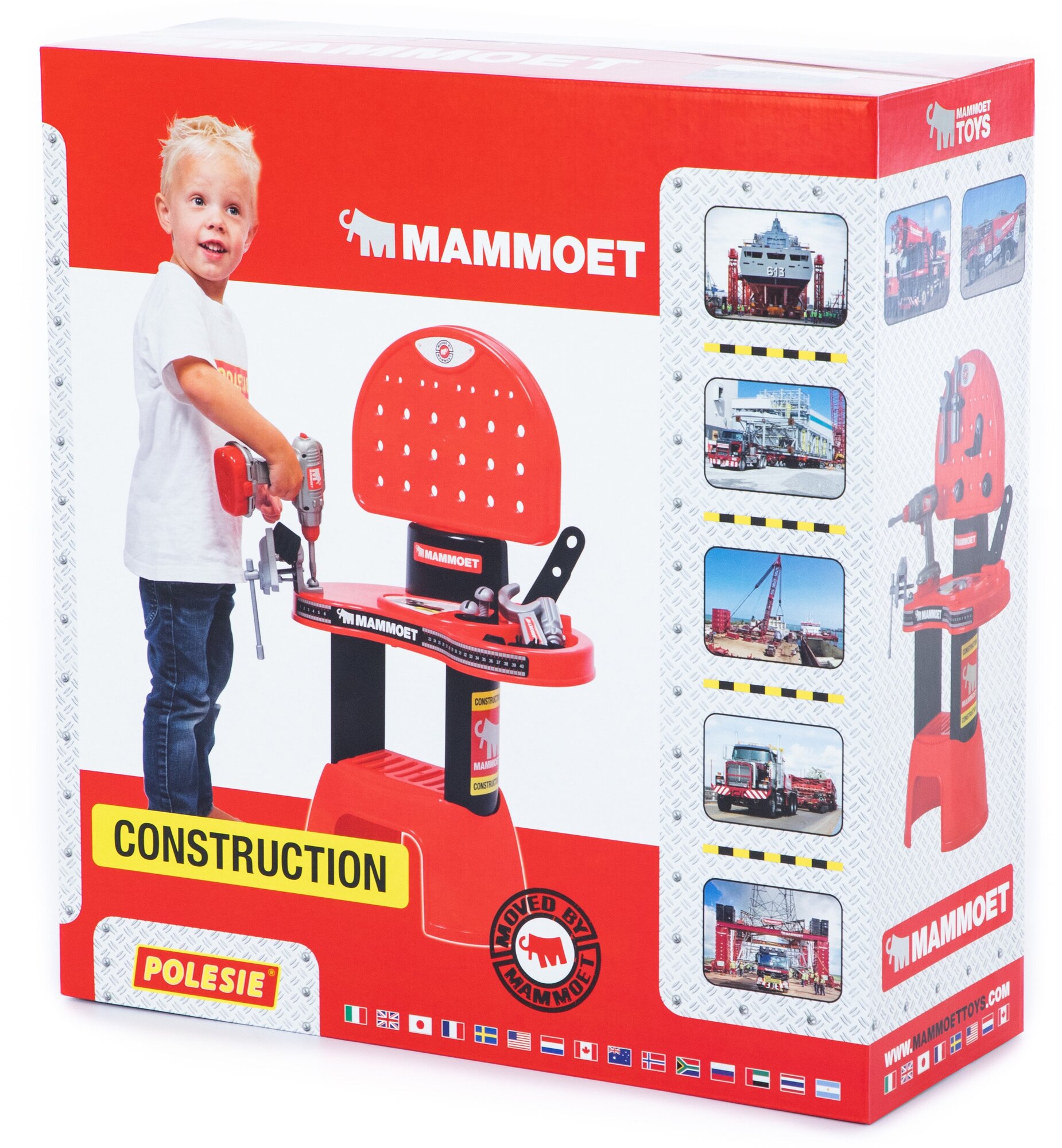 Комплекс «Мастерская МАММОЕТ» представляет собой рабочий стол (верстак) с полочкой для деталей, навесными держателями инструментов, перфорированной столешницей. Особенность набора — электронный шуруповерт. С его помощью ребёнок может откручивать и прикручивать к столешнице винты, присоединять пластины. Кроме того, мальчик познакомится с такими инструментами как отвёртка, гаечный ключ, тиски. В набор входят винты, гайки, соединительные пластины и уголки. С помощью набора мальчик приобретёт первые навыки работы с инструментом. Игровой комплекс развивает творческие способности, логическое мышление и умение конструировать.