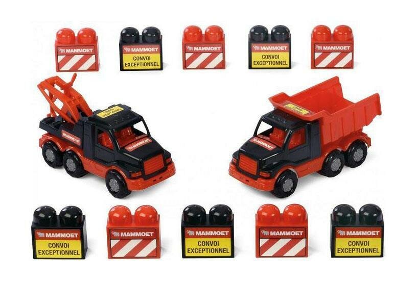 Самосвал Полесье с конструктором (57143) 15 см MAMMOET Автомобиль-самосвал + автомобиль-эвакуатор + конструктор (10 элементов) (в контейнере) (57143_PLS)