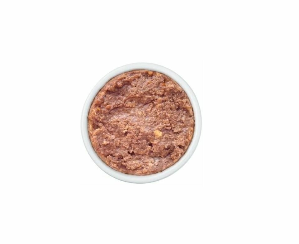Полнорационный консервированный корм для собак с говядиной и говяжьей печенью.