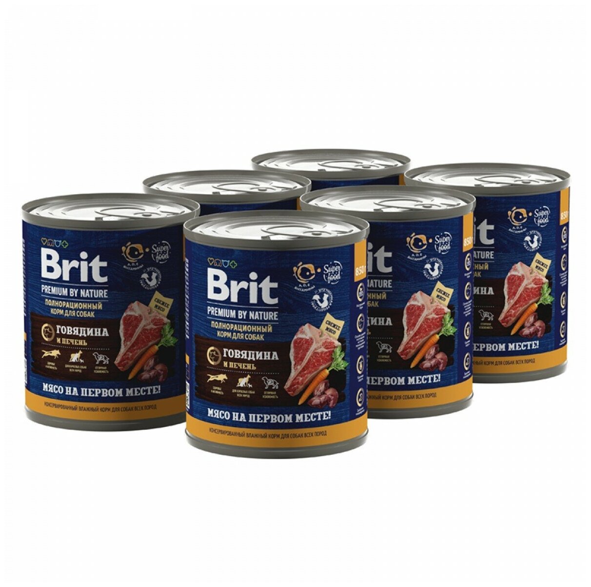 Влажный корм для собак Brit Premium by Nature Говядина и печень 085 кг