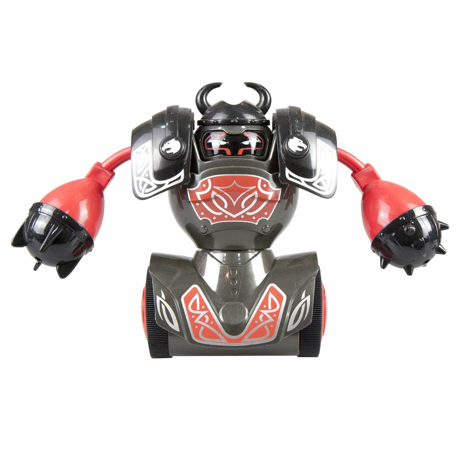 Набор с парой боевых роботов, которые своими доспехами напоминают древних викингов, непременно понравится вашему озорнику. Ребенок сможет играть с роботами, как в одиночку, так и вдвоем с другом или с отцом. Задача сбить броню с робота противника и одержать победу. Особенности: - Набор порадует любителей фантастических сражений, в свое распоряжение ребенок получит 2 интерактивных боевых робота в броне черного и коричневого цвета. - У робота маленькие ручки с оружием и подвижные ножки-колесики, шлем украшают рога викинга. - Играть можно одному или вдвоем с другом, в зависимости от этого можно выбрать подходящий режим игры: · Если ребенок играет один, то он управляет выбранным роботом с помощью пульта, а другой робот отражает атаки и нападает автоматически. · В режиме дуэли соперники управляют своими роботами. - Цель игры – атаковать и сбить с робота противника мощным ударом кулака или оружием броню. - Схватка будет сопровождаться оригинальными звуковыми и световыми эффектами. - Игра поможет ребенку раскрыть свое воображение, потренировать быстроту реакции, ловкость, координацию и глазомер.