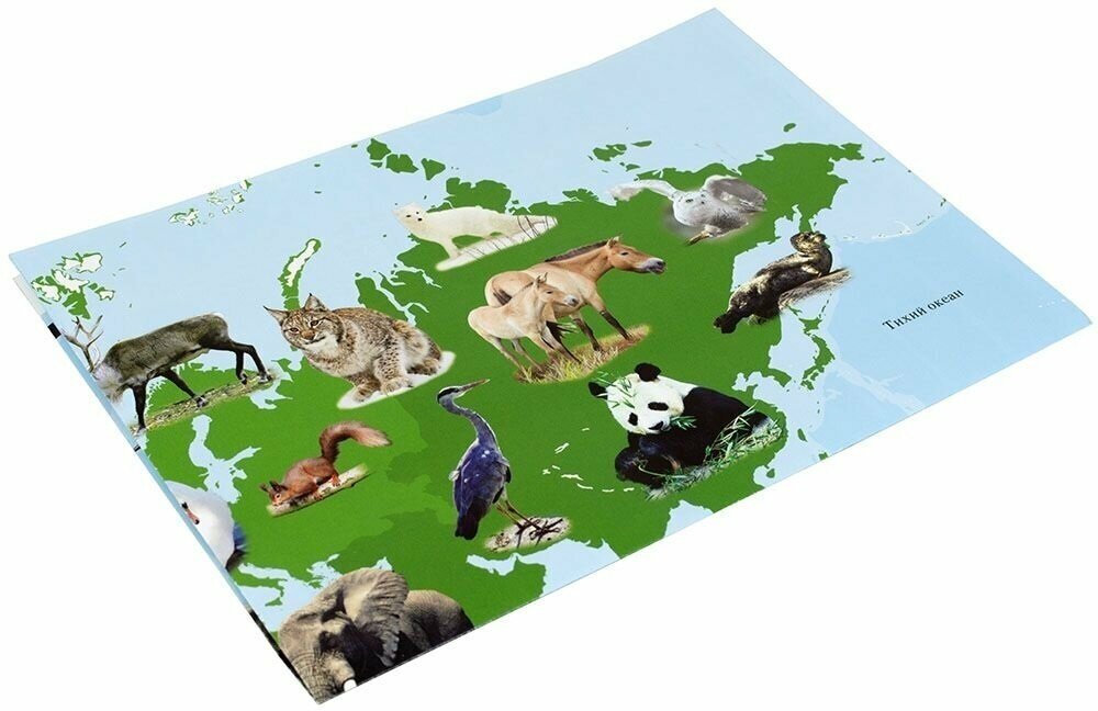 Комплектация: 200 карточек с животными, 6 полей с континентами, карта мира, правила игры.