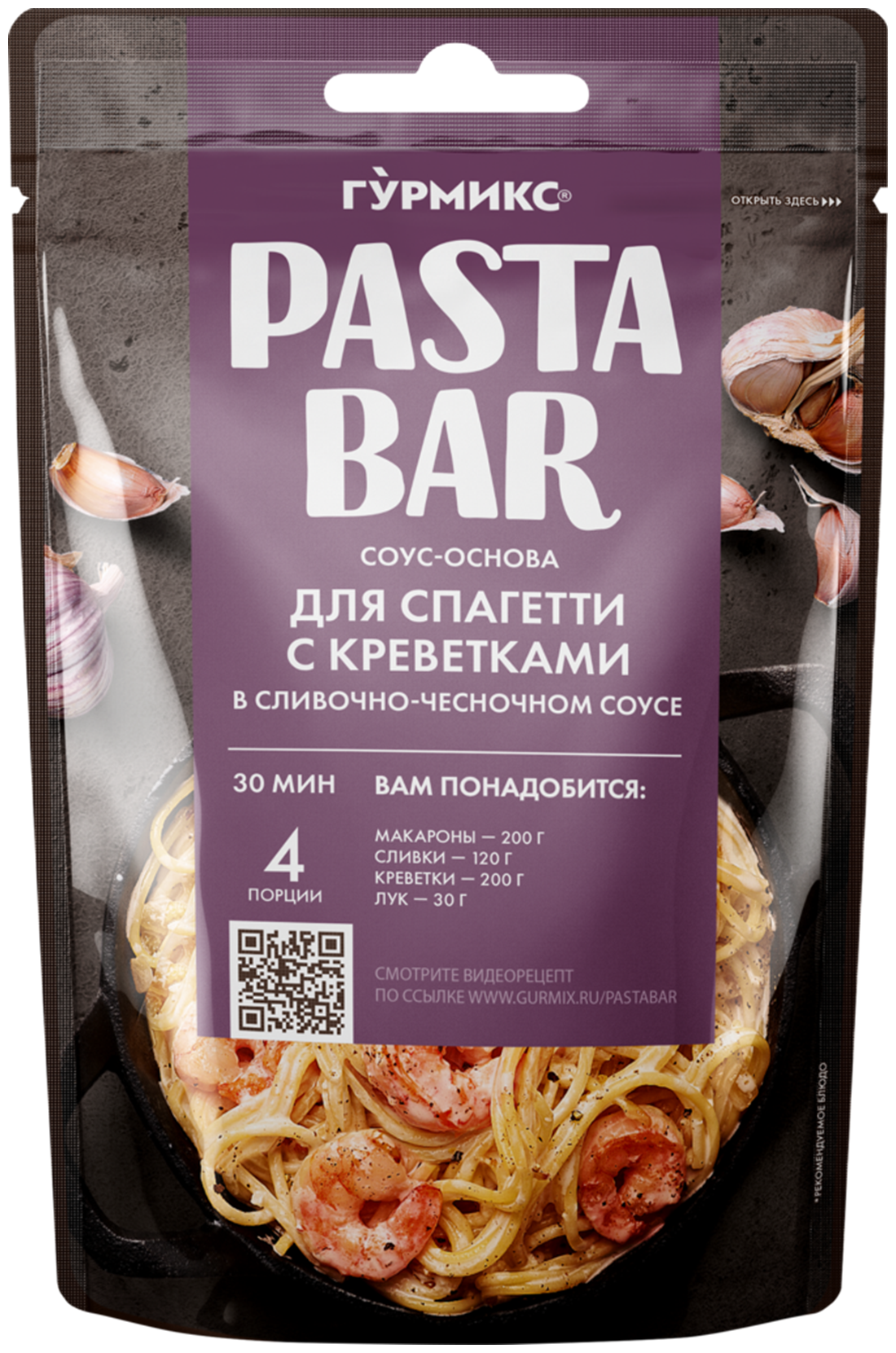 Соус-основа Гурмикс для приготовления спагетти с креветками в сливочно-чесночном соусе 120г АО "Виртекс"
