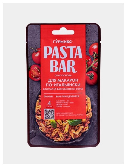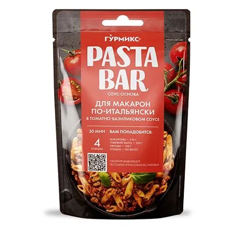 Паста бар от бренда Гурмикс - новое решение для быстрого, удобного и вкусного приготовления пасты, макарон, лапши в домашних условиях. Один пакетик рассчитан на 4 порции.