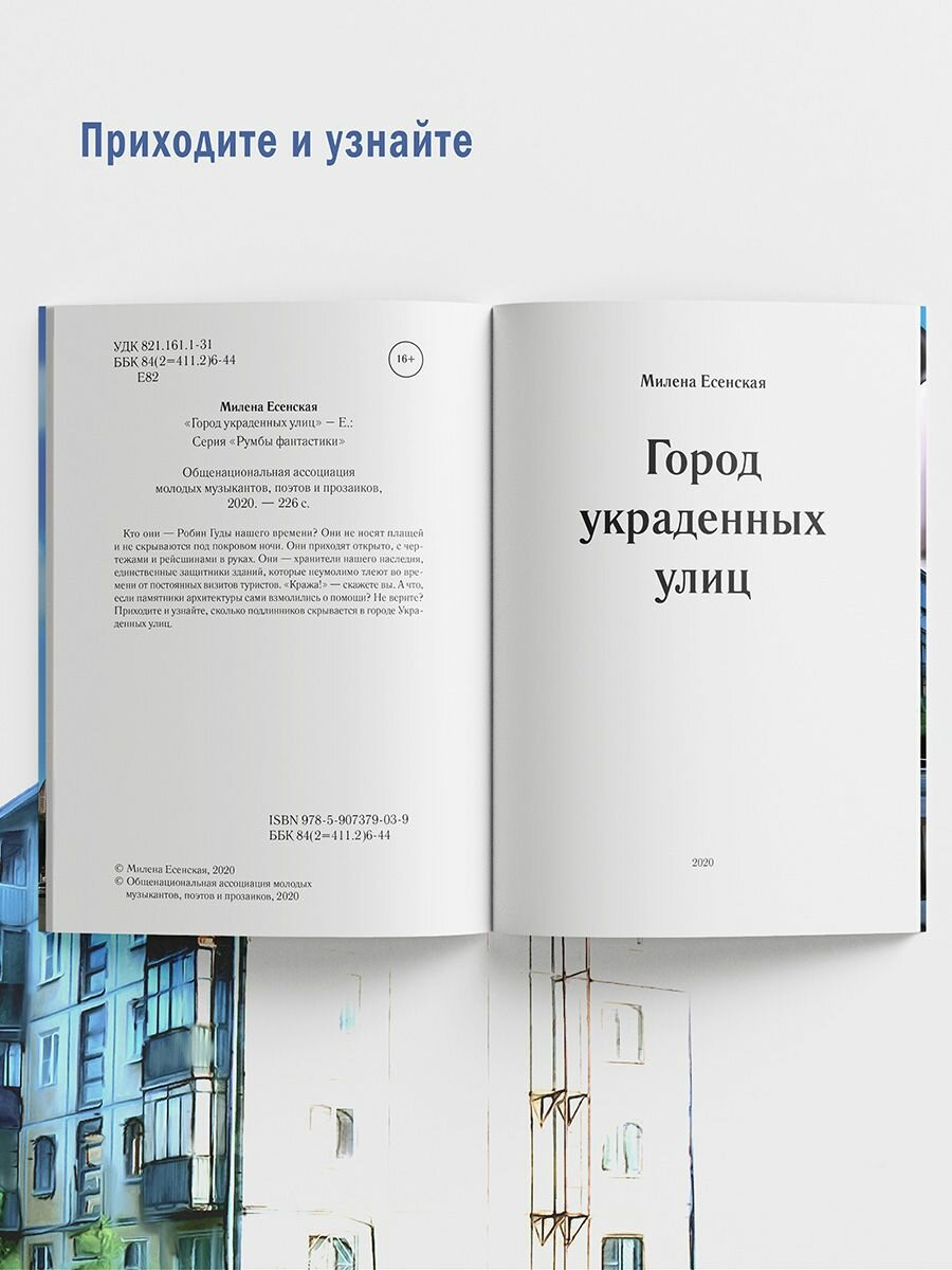 Книга: Город украденных улиц (Милена Есенская); Общенациональная ассоциация молодых музыкантов, поэтов и прозаиков, 2020