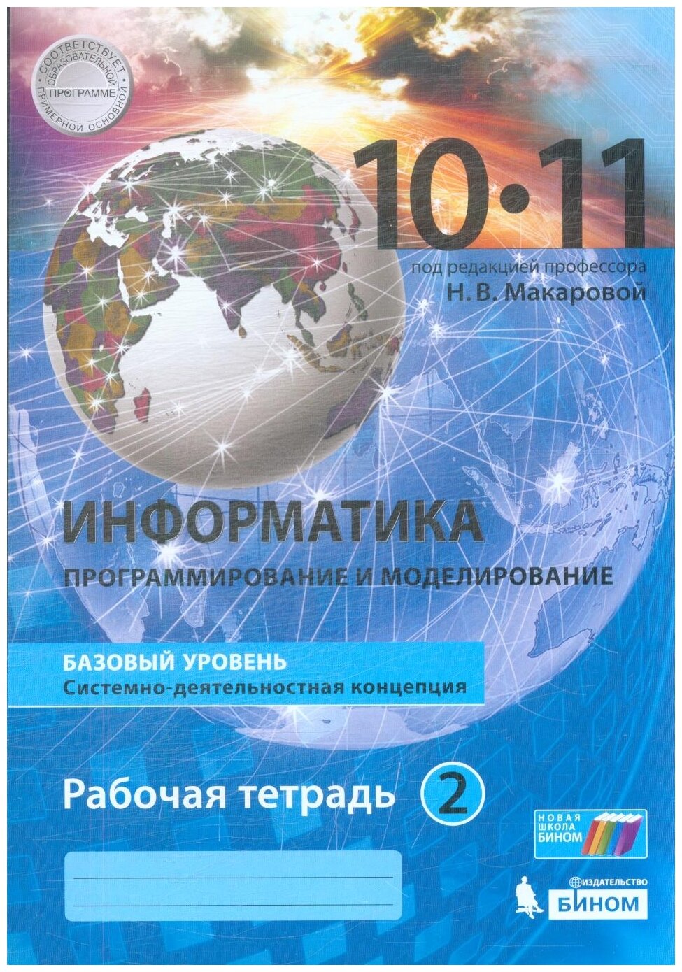Рабочая тетрадь входит в состав УМК по информатике для 10-11 классов под ред. проф. Н. В. Макаровой наряду с учебником в 2-х частях, задачником с типовыми задачами, задачником по моделированию и методическим пособием. Содержит задания для самостоятельной работы ко всем параграфам учебника. Задания предназначены для практического применения изучаемого материала. Представлены задания базового и повышенного уровней сложности с кратким или развёрнутым ответом, на установление соответствия, с выбором верного варианта ответа, на поиск и исследование информации и пр. Система заданий в рабочей тетради ориентирована на индивидуализацию учебной деятельности и подготовку к государственной итоговой аттестации в соответствии с требованиями ФГОС среднего общего образования.