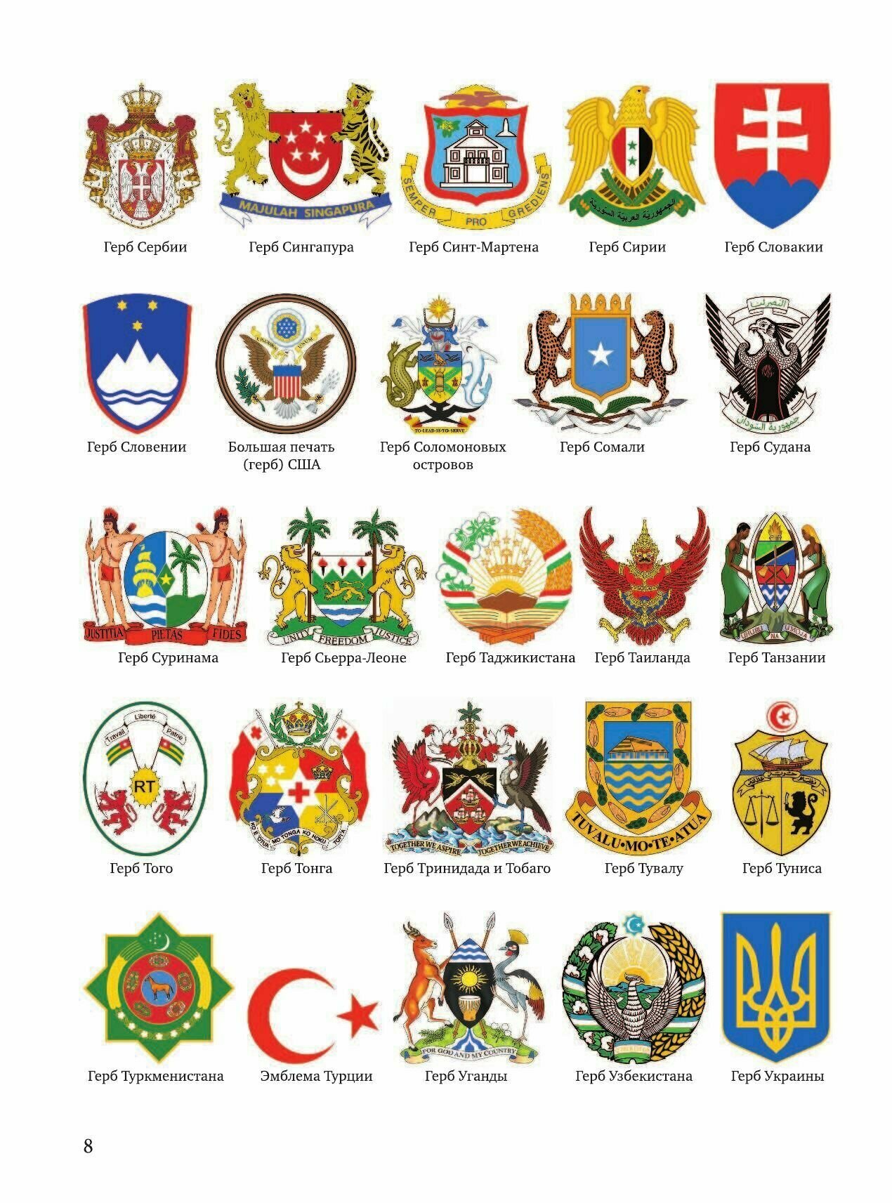 • Флаги, гербы, монеты, костюмы народов разных стран