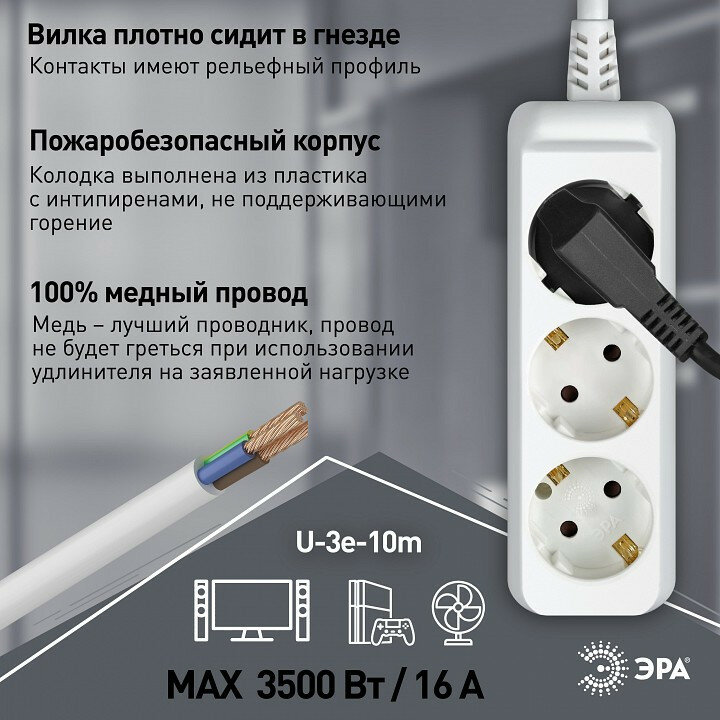 Удлинитель ЭРА U-3e-10m-3x1