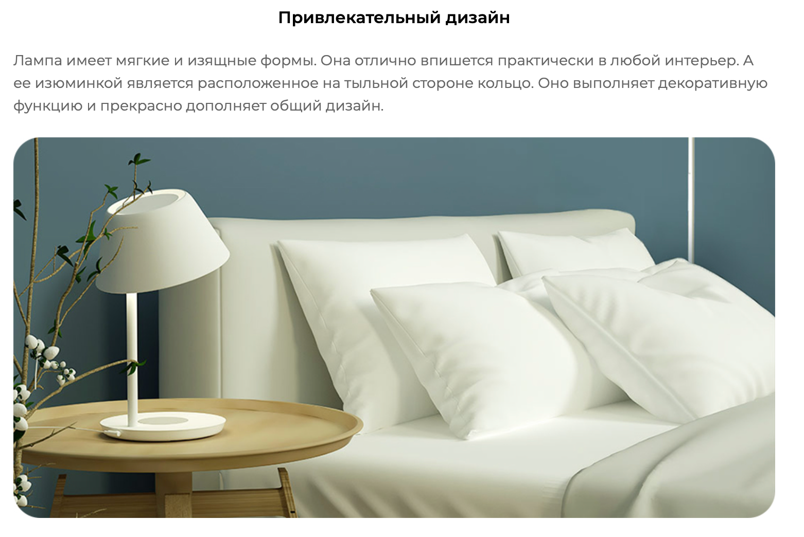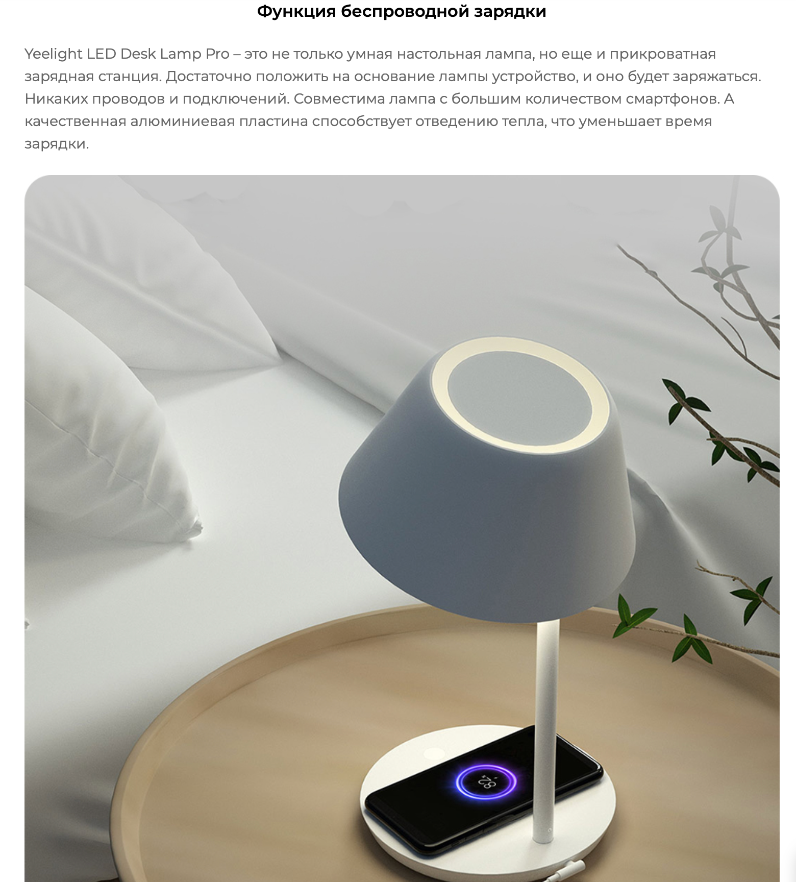 Xiaomi Yeelight Star Smart Desk Table Lamp Pro 20Вт 400lm Wi-Fi (YLCT03YL) - настольный светильник от Yeelight в элегантном белом корпусе. Плоская платформа обеспечивает устойчивое положение, а плафон-рассеиватель регулируется на 30° и защищает ваши глаза от яркого света. Устройство оснащено экономичной и яркой LED-лампой, создающей удобное освещение для работы с документами или за компьютером. Модель Yeelight LCT03YL работает от стандартной электросети при потреблении всего 20 Вт. Устройство дополнено технологией беспроводной зарядки, синхронизацией через Wi-Fi, удобным управлением через приложение. Можно подключить лампу к интеллектуальной системе, например Google Assistant, Samsung SmartThings, Amazon Alexa. Светодиодная лампа позволяет регулировать цветовую температуру и яркость.