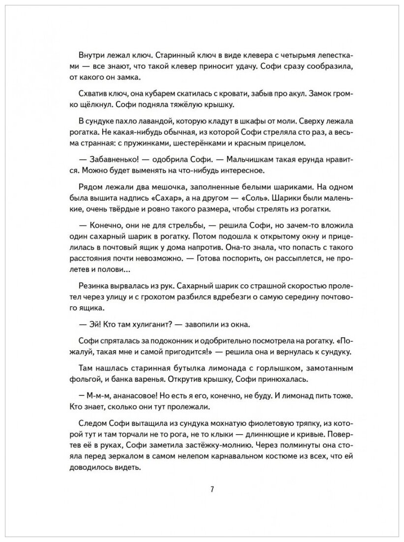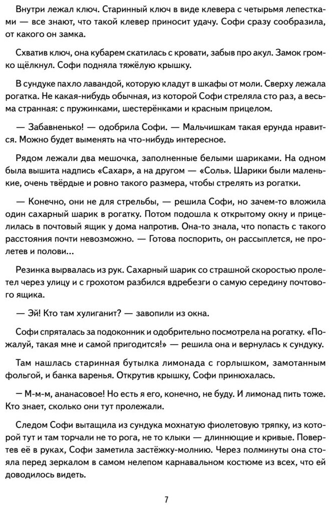 Волшебная история для тех, у кого под кроватью каждую ночь кто-то шуршит, в шкафу кто-то сопит, в окна кто-то скребется, а ещё кто-то выглядывает из темного угла. Фокус в том, чтобы из жертвы превратиться в охотника, как героиня этой книжки девочка Софи. Ей в руки (осторожно, спойлер!) случайно попадает дневник настоящего охотника на чудовищ: теперь Софи знает их слабые места, а дальше начинается такой разгром фашистов под Москвой, что Верещагин с его батальными полотнами отдыхает. Самое приятное, что все хитрости Софи работают и в реальной жизни.