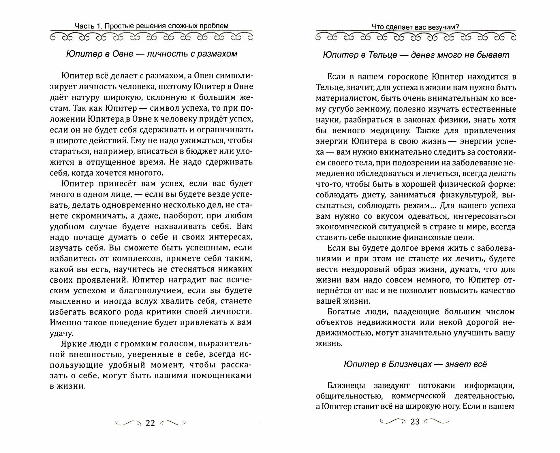 В моей книжной коллекции есть почти все книги Мазовой, данная книга вполне в духе автора: одна главная тема и множество подтем. Первая часть расскажет о вашем Юпитере, во второй части сборная солянка из астро рецептов по поднятию иммунитета, диетам и укреплению нервной системы. В первых частях есть также небольшие полезные советы по сохранению жизненной энергии. Третья часть полностью посвящена группам крови, от которых в свою очередь зависит здоровье (у каждой группы свои уязвимые места). Множество советов, как поддерживать здоровье, опираясь на свою группу крови. Иллюстраций нет, бумага сероватая, газетная, но шрифт вполне комфортный. Любителям книг автора наверняка понравится.