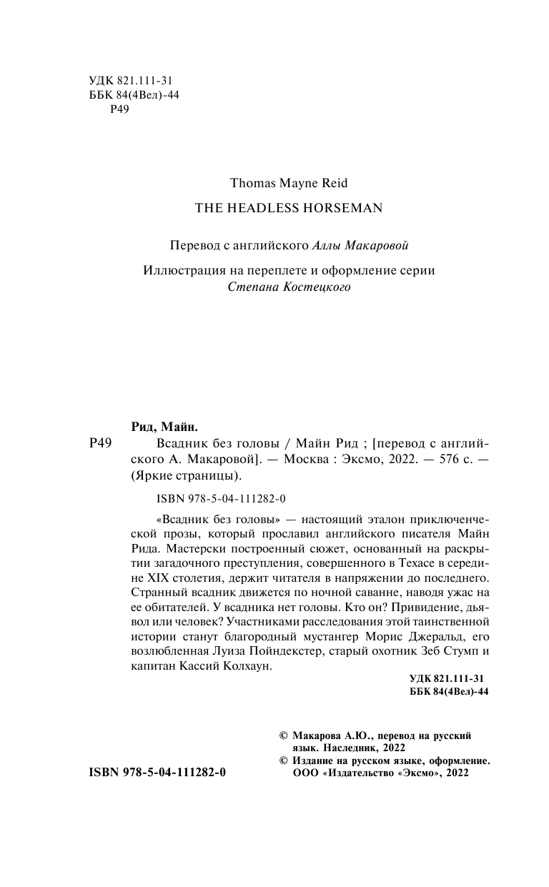 Книга: Всадник без головы (Томас Рид); Эксмо, Редакция 1, 2022