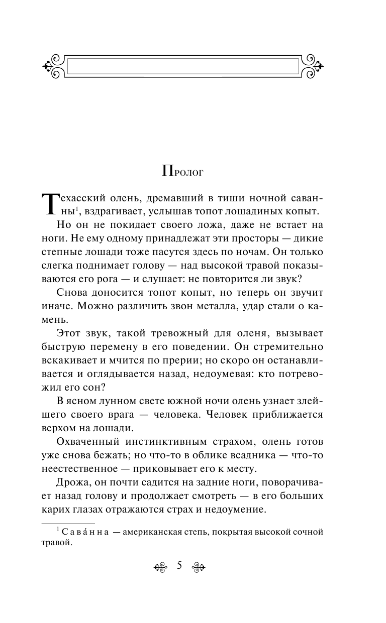 "Всадник без головы" - настоящий эталон приключенческой прозы, который прославил английского писателя Майн Рида. Мастерски построенный сюжет, основанный на раскрытии загадочного преступления, совершенного в Техасе в середине XIX столетия, держит читателя в напряжении до последнего. Странный всадник движется по ночной саванне, наводя ужас на ее обитателей. У всадника нет головы. Кто он? Привидение, дьявол или человек? Участниками расследования этой таинственной истории станут благородный мустангер Морис Джеральд, его возлюбленная Луиза Пойндекстер, старый охотник Зеб Стумп и капитан Кассий Колхаун.