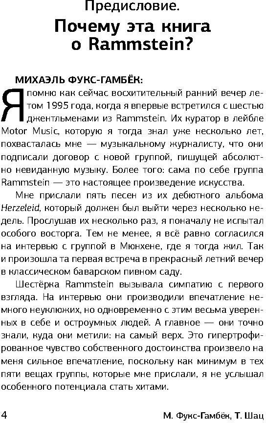 Rammstein моя любимая рок группа, и после того, как я собрал всю ее дискографмю, включая новый альбом, решил прикупить книги биографии об образовании этого коллектива. Чисто случайно в магазине я натолкнулся на данный экземпляр и решил приобрести его. Книга написана добротно, страницы качественные, плюс есть приложения с выпущенными на момент выхода издания альбомами