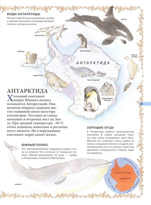 Подарили эту книгу 6 летнему ребенку на Новый год - так он все праздники просидел с ней! Столько нового узнал, много новых животных запомнил и интересные факты про них. Отличная энциклопедия, красивые иллюстрации - думаю, что она и в школе нам не раз пригодится. Мне понравилось, что животные разделены по континентам, ребенку удобно ориентироваться где кто живет.