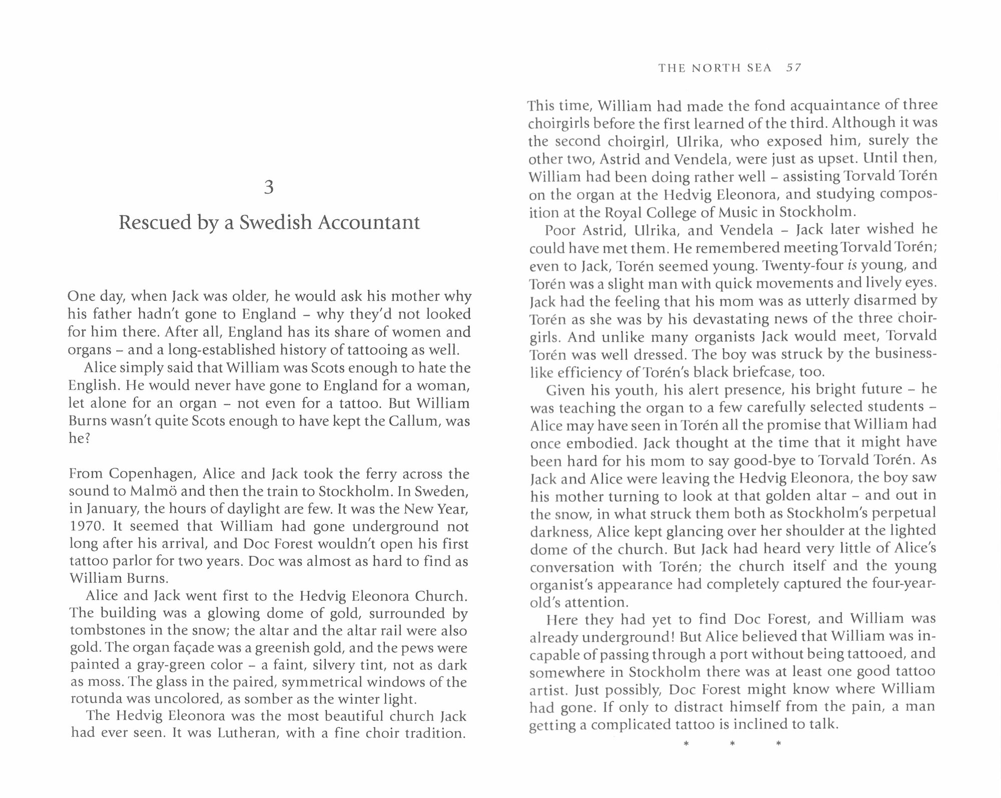 Jack Burns' mother, Alice, is a tattoo artist in search of the boy's father, a virtuoso organist named William who has fled America to Europe. To fund her journey, she plies her trade in the seaports of the Baltic coast. But her four-year-old son's errant father can't be found, and soon even Jack's memories of that perplexing time are called into question. It is only when he becomes a Hollywood actor in later life that what he has experienced in the past comes into telling play in his present...