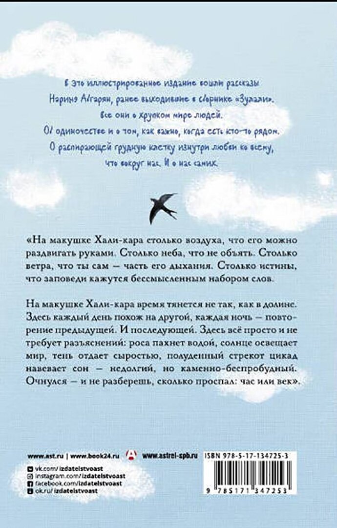 Дабы не вводить в заблуждение будущего читателя, сразу следует сказать, что под этой обложкой с новым названием, вышел ранее издаваемый сборник рассказов Наринэ Абгарян «Зулали», дополнительным украшением которого стали иллюстрации Юлии Межовой. Листайте карусель.