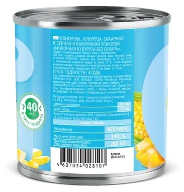 | Состав | Кукуруза сахарная целыми зернами, вода питьевая, соль |