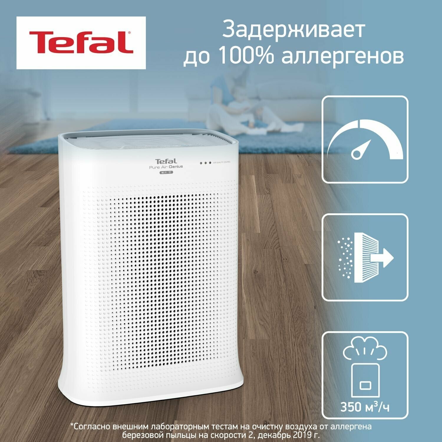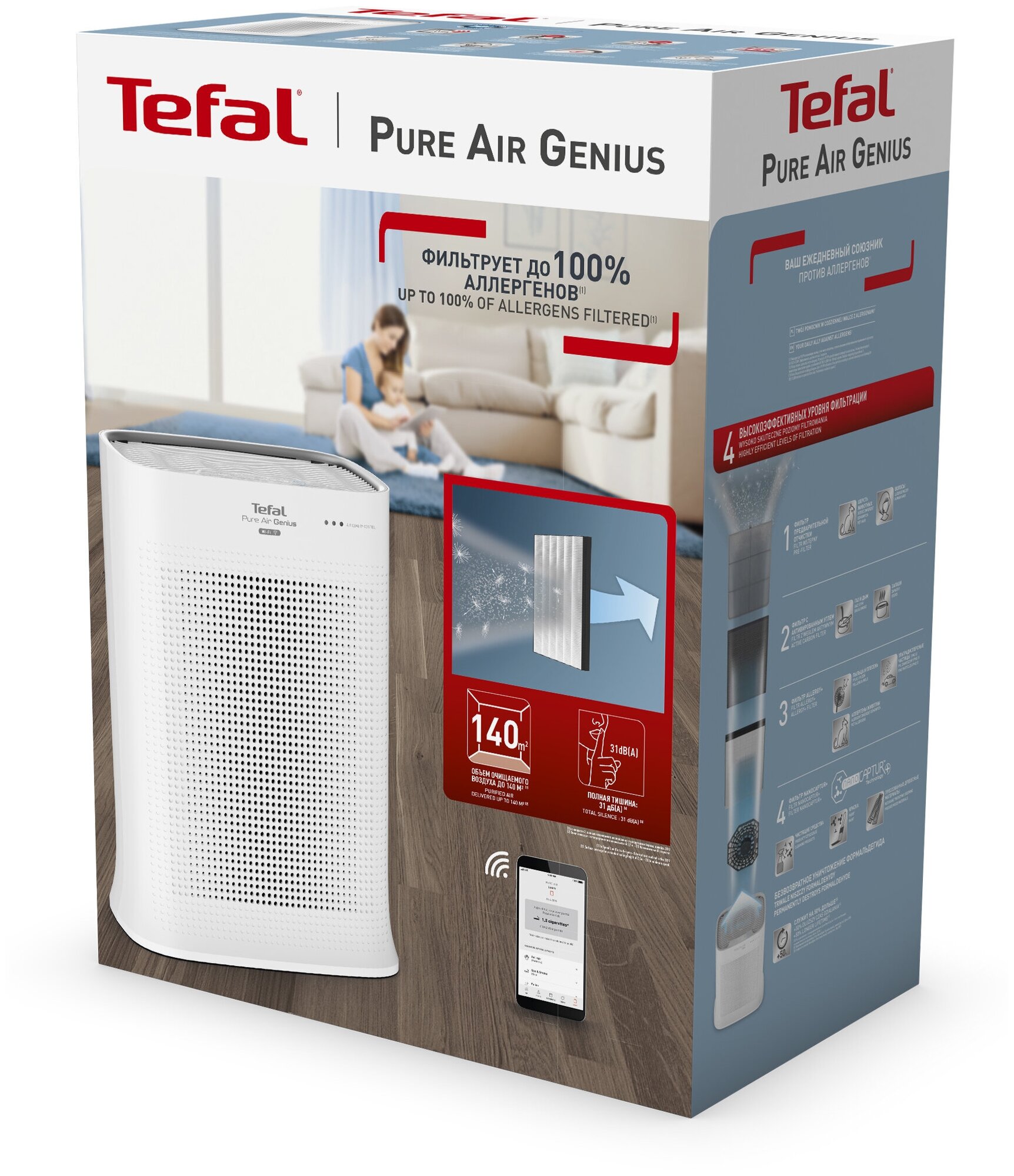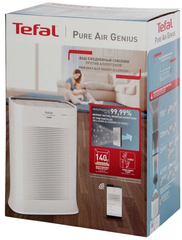 Дышите спокойно с Pure Air Genius – тихим и экологичным очистителем воздуха от Tefal. Он уничтожает до 100% аллергенов и микрочастиц и делает воздух абсолютно чистым благодаря высокоэффективной системе фильтрации с фильтром Allergy+.